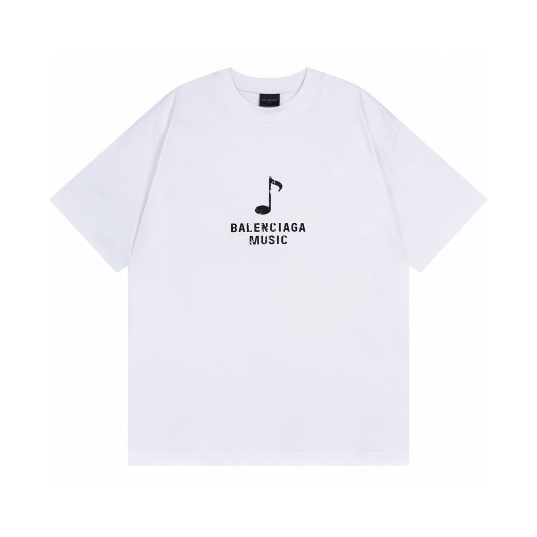 BALENCIAGA(バレンシアガ) 業界最高い品質 芸能人 コピー 音符プリントカジュアル半袖Tシャツ