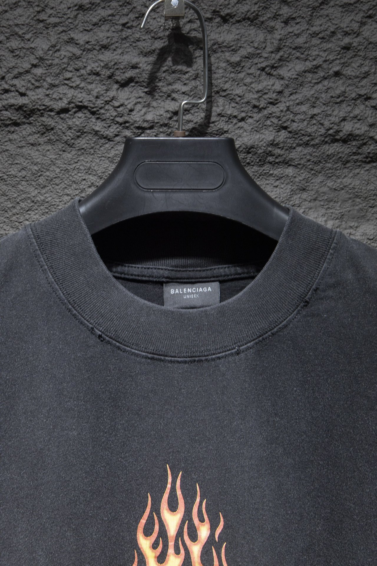 激安大特価最新作 バレンシアガ コピー 炎プリント刺しゅうカジュアル半袖Tシャツ