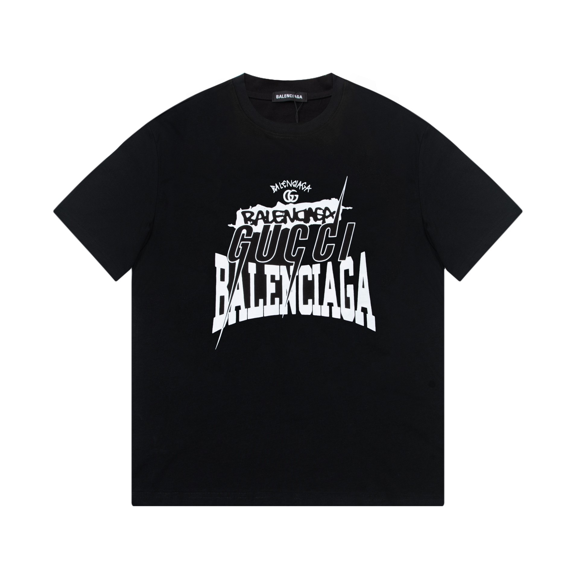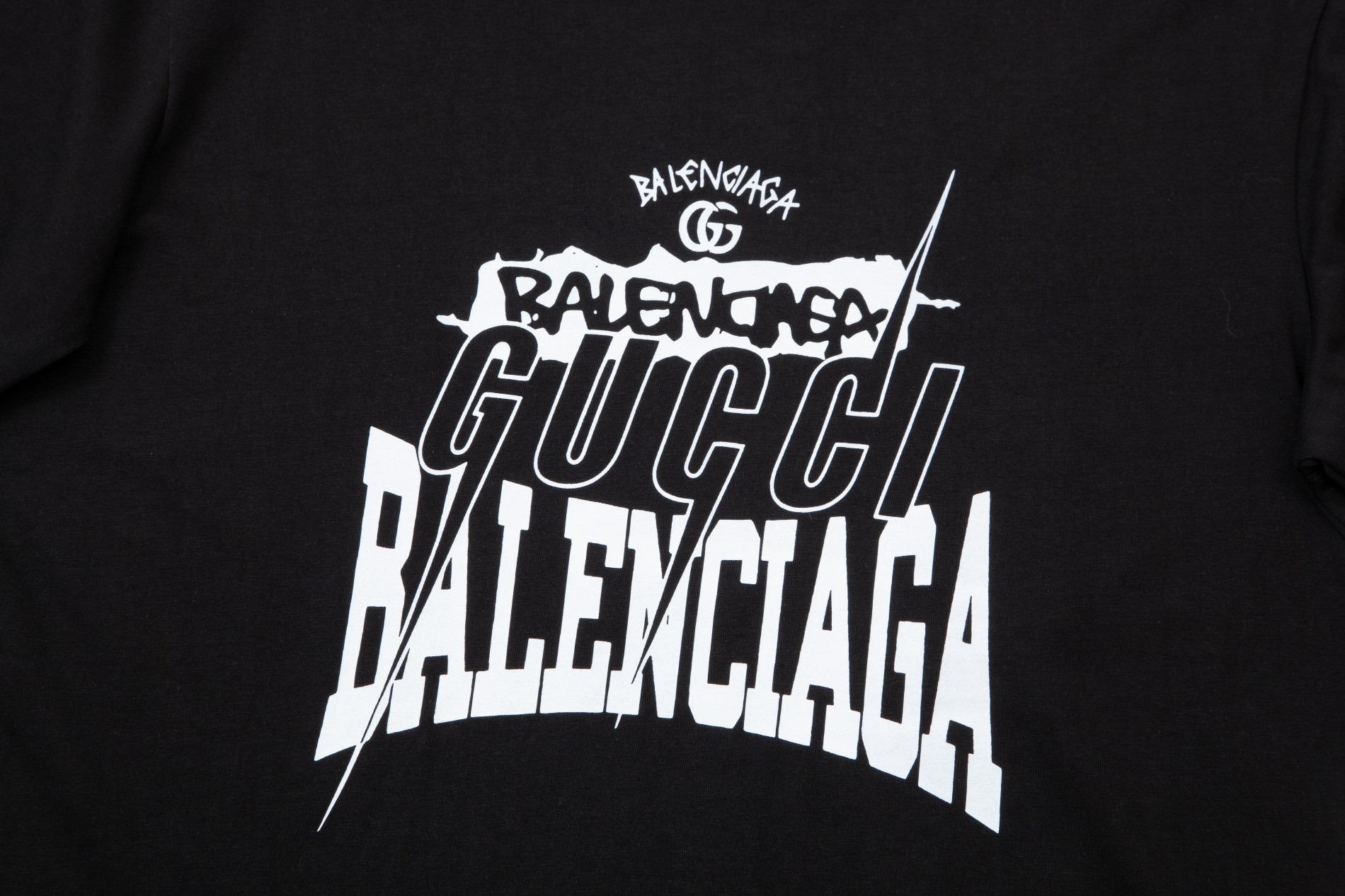限定販売 バレンシアガ X グッチ コピー アルファベットプリントカジュアル半袖Tシャツ