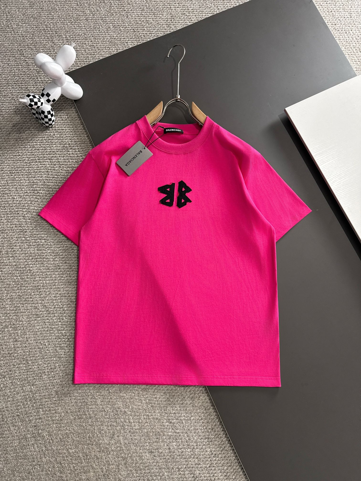 バレンシアガ 激安通販Tシャツ ピンクカラー BBロゴ刺繍入り 女子人気