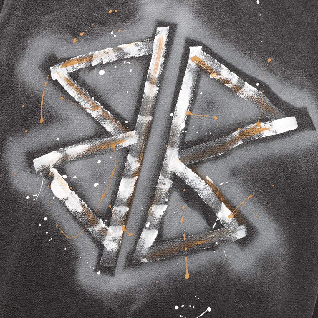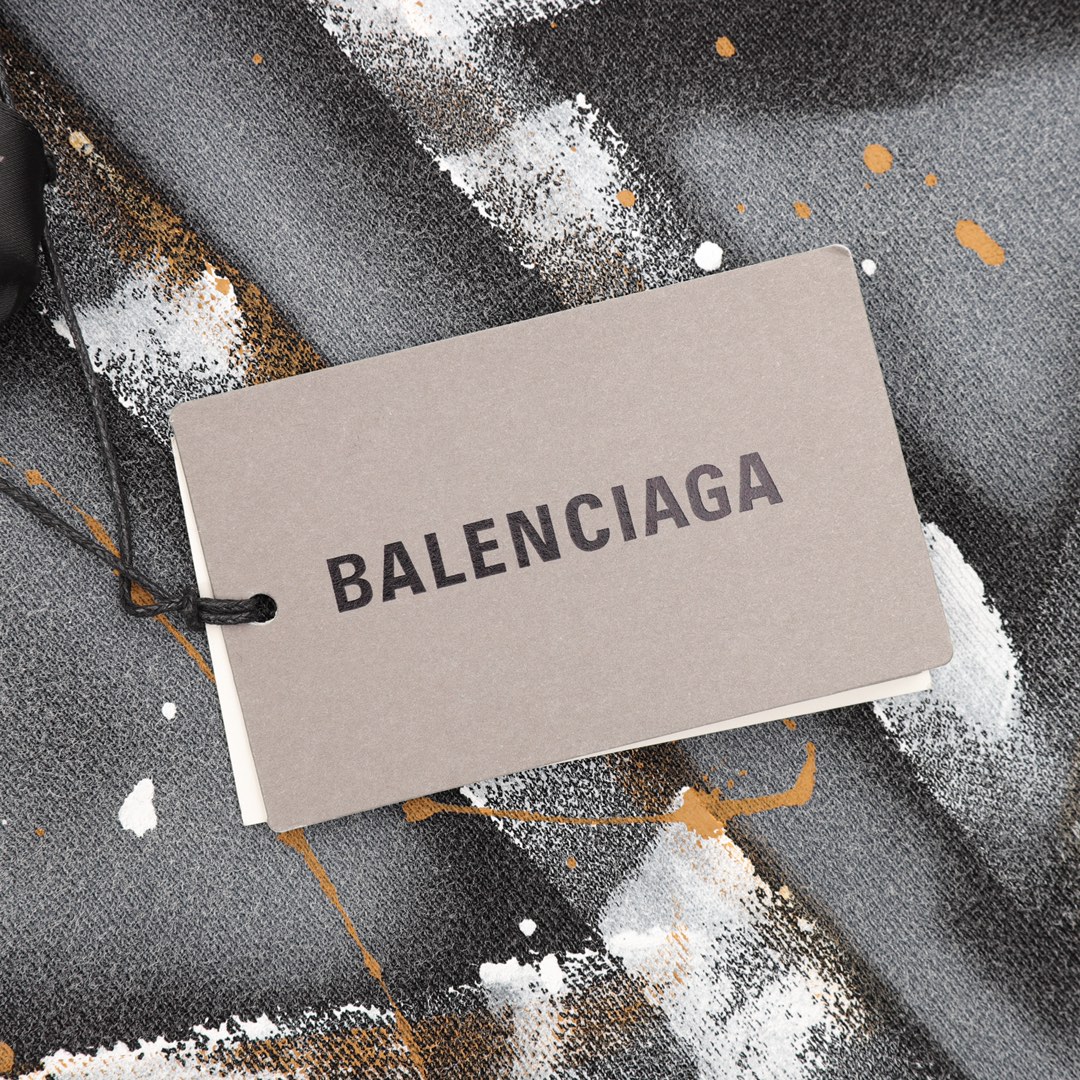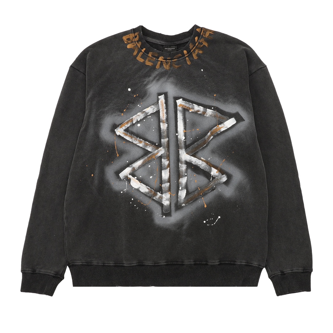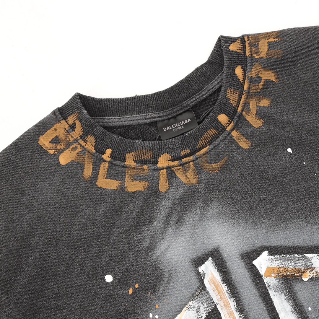 ヴィンテージ感とストリート感を融合したこのスウェットは、フロントにスプレーアート風の巨大BBロゴを配置し、バレンシアガらしい存在感を存分に楽しめるデザインです。襟元にも手書き風ロゴが施され、全体に散りばめられたペイントが唯一無二の雰囲気を演出します。生地は柔らかく肌触りが良く、程よい厚みで季節を問わず着用可能。モード系や古着ミックススタイルとも相性抜群で、一枚で主役級のコーデを作ることができます。2025年も高い人気を誇る、完成度の高いヴィンテージモードアイテムです。
