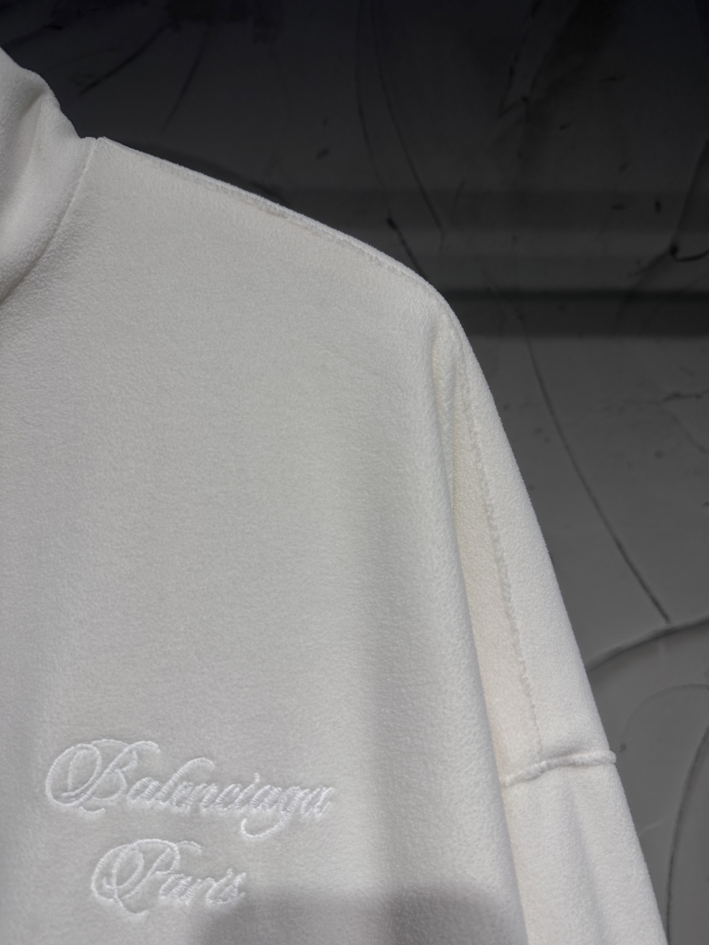 上品なホワイトカラーを採用したバレンシアガ(Balenciaga)のジップジャケットは、カジュアルと洗練を兼ね備えたデザインです。フロントはすっきりとした印象で、背面ロゴがさりげないアクセントに。生地は肌触りが良く、羽織りとしても使いやすい仕様。デニムやワイドパンツと合わせることで、都会的なスタイルを演出できます。