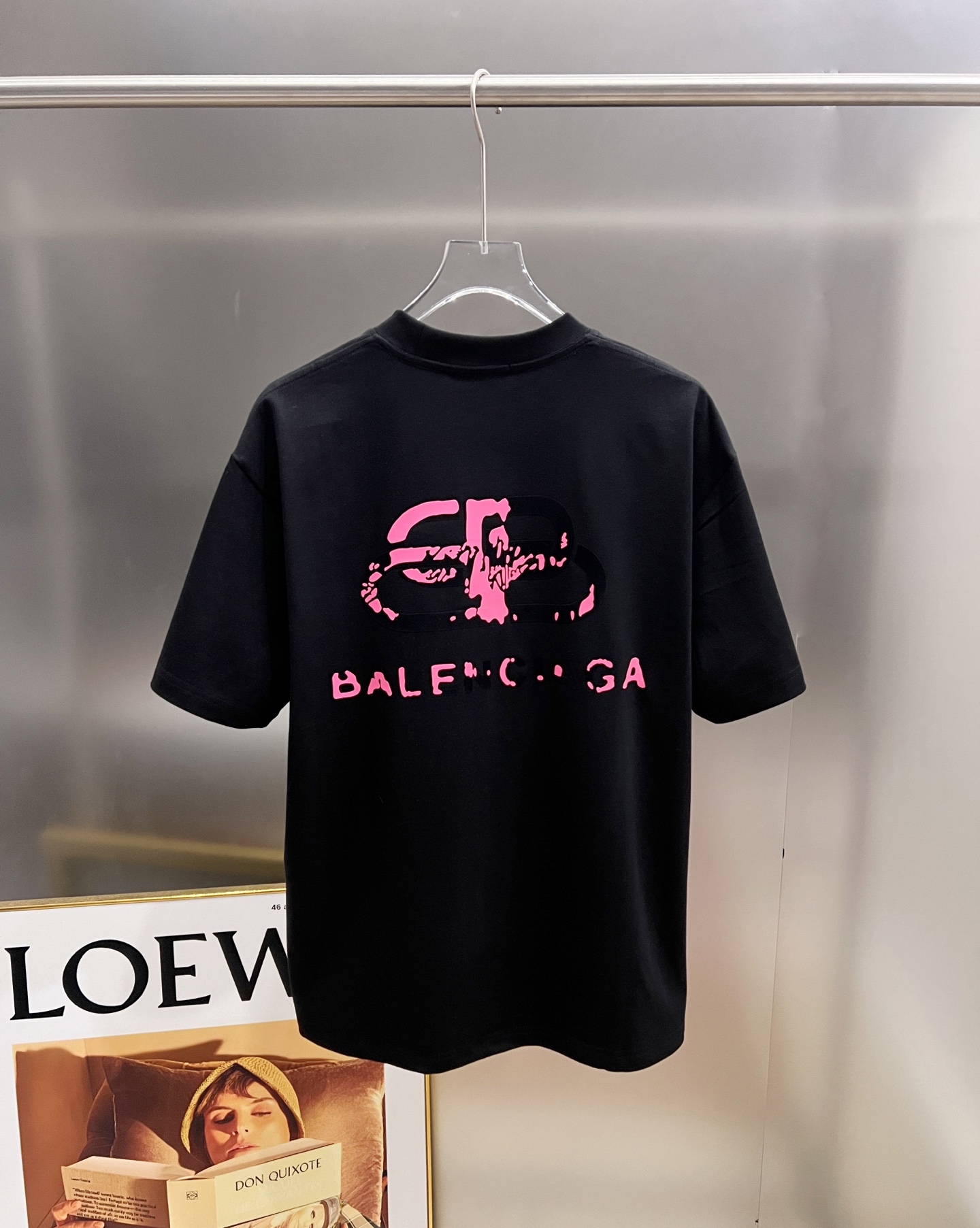 バレンシアガ スーパーコピー バックロゴTシャツ|ピンクアクセントが映えるストリート人気モデル