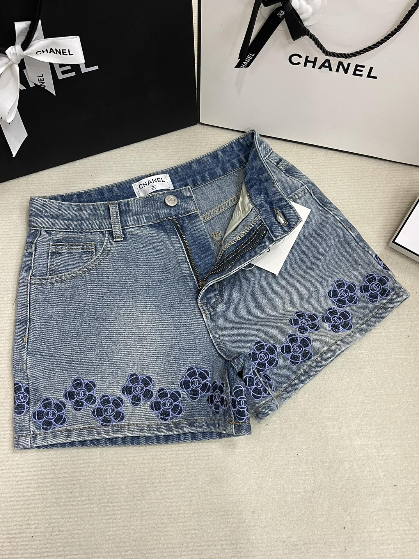 CHANEL(シャネル)激安販売 アイキャッチ ファッション コピー 刺繍logo デニムショートパンツ