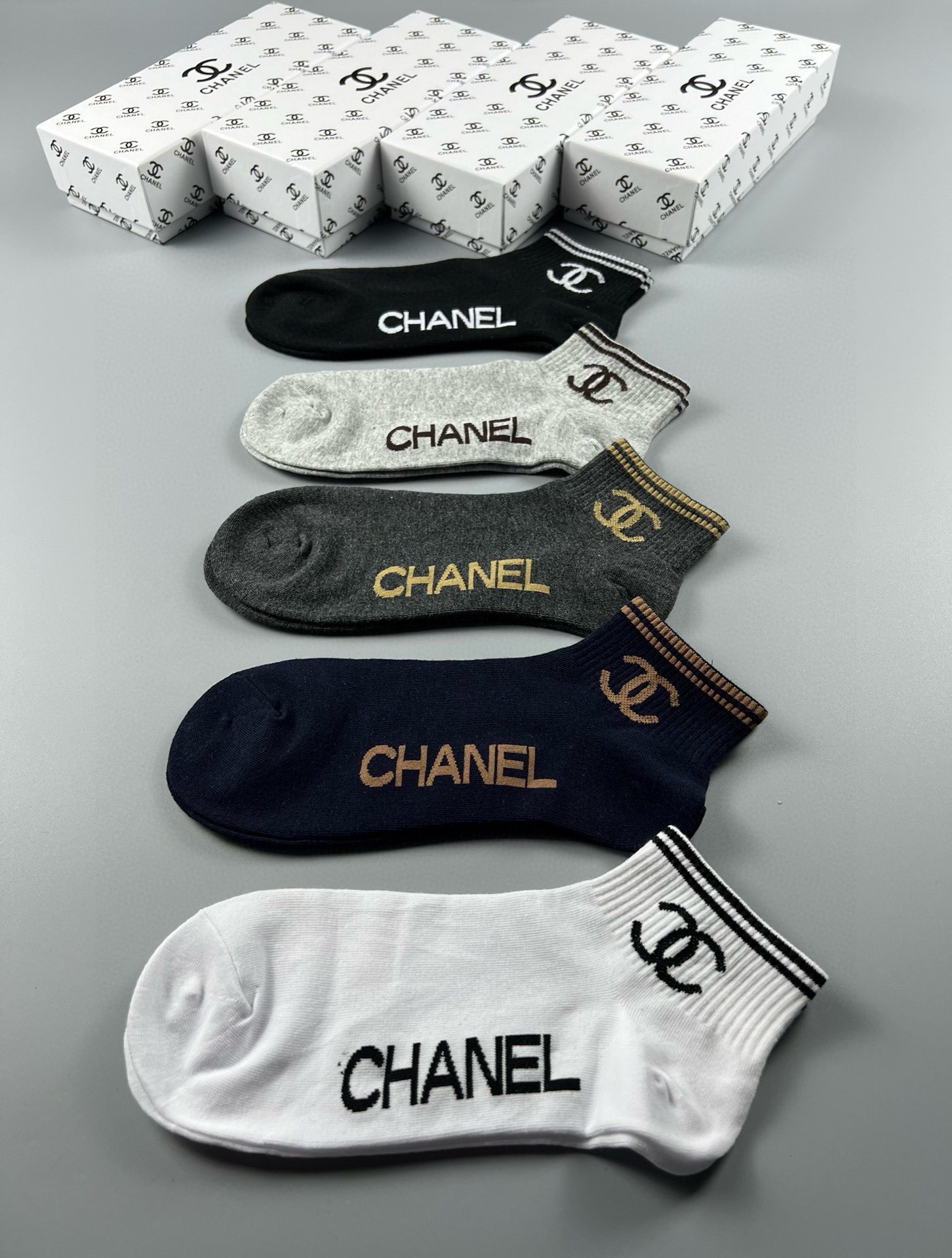 HOT100%新品 シャネル 偽物綿100%通気ショートソックス5足組
