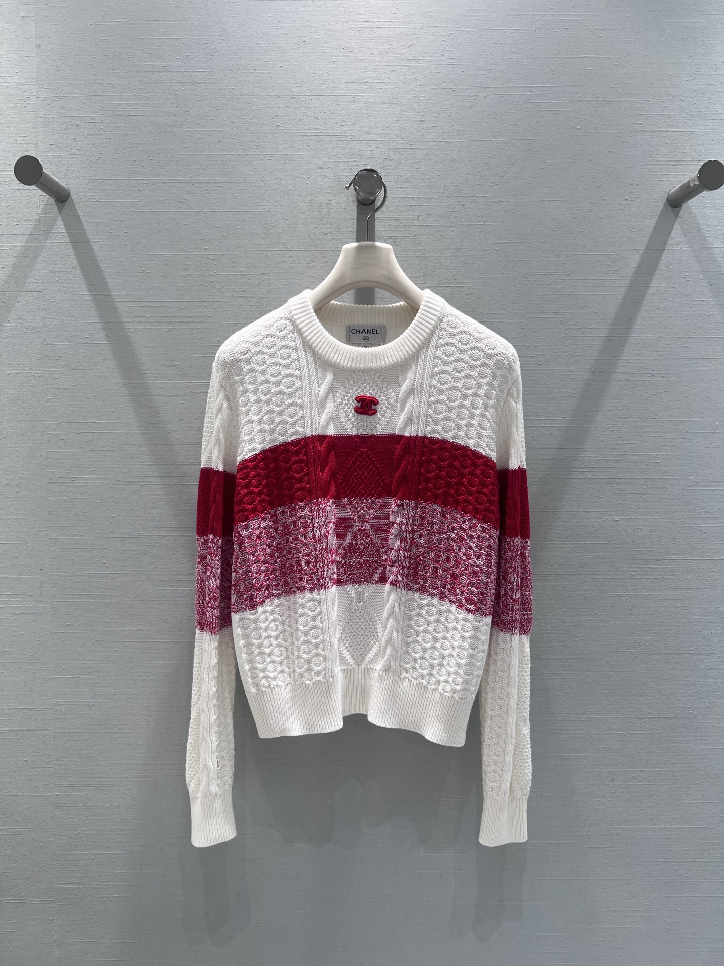商品介紹 シャネル(Chanel)2025秋冬コレクションの目玉、赤白ケーブルニットセーターがスーパーコピー 優良サイト最高峰で登場。白を基調に中央を走る鮮やかな赤ボーダーは遠くからでも圧倒的な存在感。取り外し可能な赤CCブローチがコーディネートのアクセントになります。ケーブル編みとアラン編みの組み合わせは凹凸・糸の太さまで正規品と完全一致。ショート丈で腰回りがスッキリ見え、スキニーにもワイドパンツにもバランス抜群。柔らかなウール混紡素材でチクチク感ゼロ、暖かさと通気性を両立しています。リブの長さ・織ネームの位置まで忠実再現済み。当店はスーパーコピー 優良サイトとして口コミ多数、発送保証・追跡番号付・丁寧梱包を徹底。一枚で主役級の秋冬コーデが完成する最強ニットです。