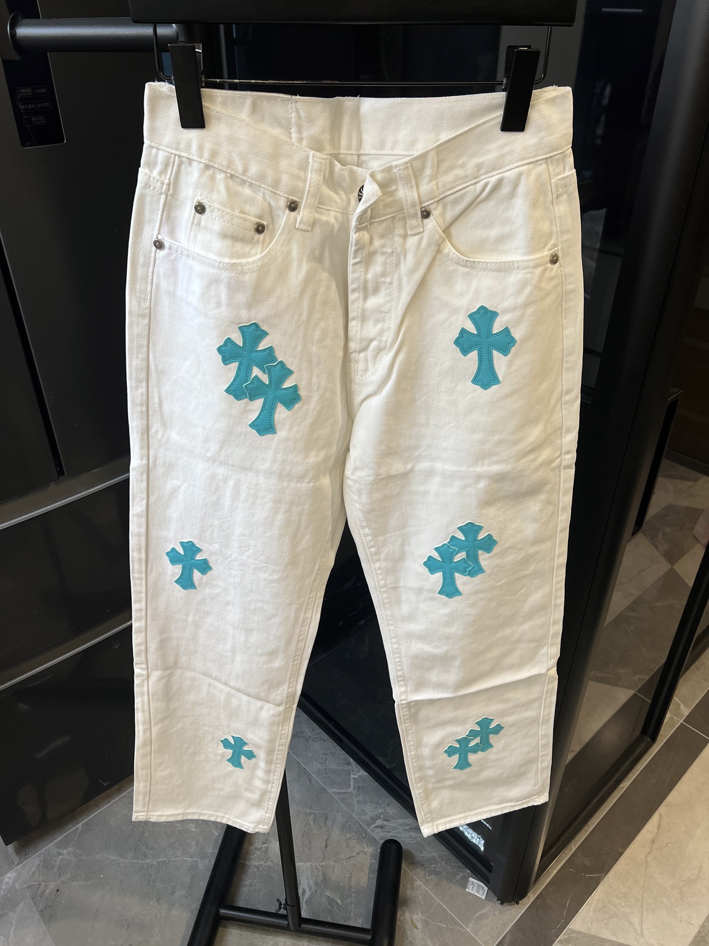 商品介紹 クロムハーツ(Chrome Hearts)2025年夏に最適なホワイト×ターコイズデニムが偽物販売店最高峰クオリティで登場。純白の13オンスデニムに、鮮烈なターコイズブルーのレザークロスパッチを絶妙に配置。パッチの色味・厚み・ステッチ・位置まで正規品と完全に一致しています。ストレッチ混紡で通気性が高く、春夏でも快適に穿ける一本。ストレートシルエットで男女兼用、Tシャツでもジャケットでも決まる万能選手です。バックポケットのレザーパッチ・ボタン・リベットも抜かりなし。爽やかすぎる配色は一枚で主役級。当店は偽物販売店として10年以上の実績、発送保証・追跡番号付・丁寧梱包でお届けします。