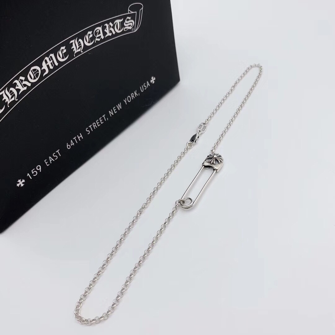 クロムハーツ 偽物 コピー CHプラス セーフティーピンwithダイヤモンド ネックレス 925シルバー