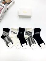 有名人の愛用品 ディオール スーパーコピー ボーダーアルファベット柄ソックス
