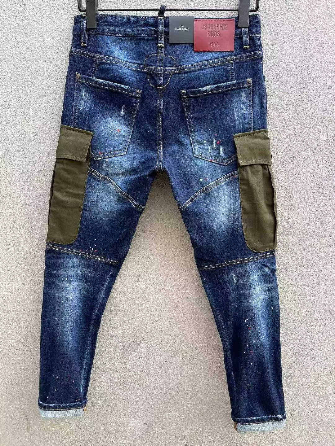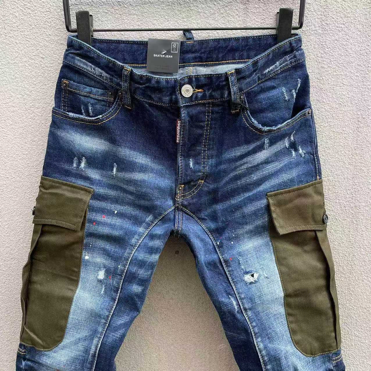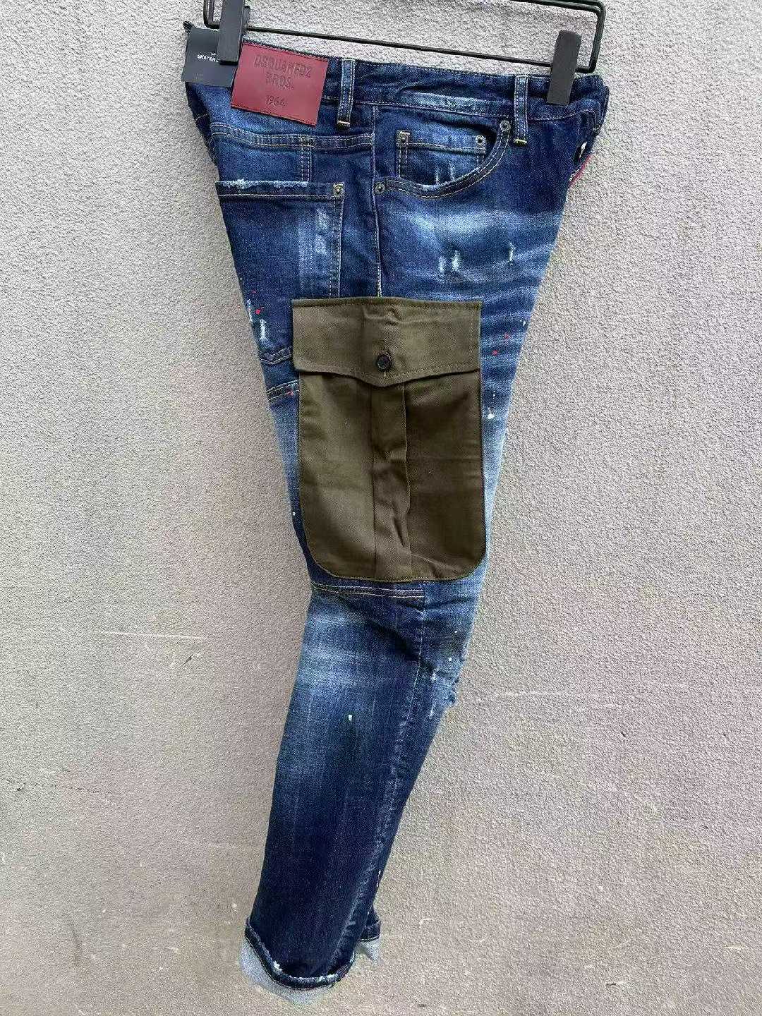 大胆に配されたカーキのミリタリーポケットが印象的な、ディースクエアード(DSQUARED2)風 見分けがつかないカスタムデニム。ヴィンテージ加工された濃紺デニム地に、スプラッシュペイントやダメージが重なり、無骨さとデザイン性を兼ね備えた一着。左右に配置された大型フラップポケットは視覚的なアクセントであると同時に、実用性も確保。脚にフィットするテーパードシルエットは足元をすっきり見せ、ブーツやスニーカーとの相性も抜群。細部に至るまで高再現度で仕上げられており、発送保証にも対応した安心のブランド コピー 激安モデルです。
