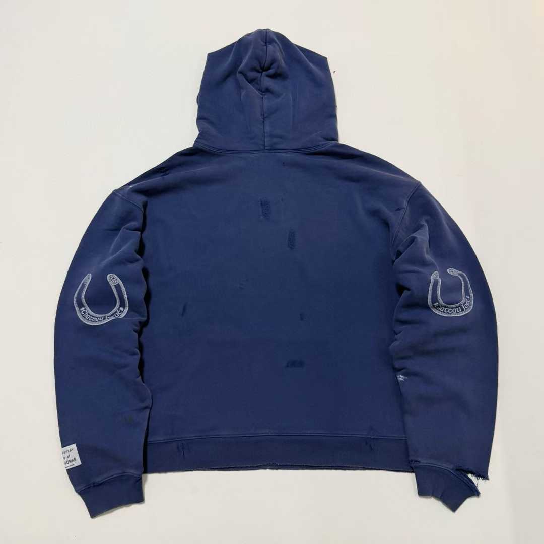 ネイビーの深い色味が印象的なGALLERY DEPTのChateau Ranchフーディーは、随所に施されたダメージ加工やペイント跡がアート性の強い雰囲気を演出します。胸元の刺繍ロゴは控えめながら存在感があり、後ろ姿にもワンポイントとなるモチーフを配置することで、360度どこから見ても魅力のあるデザインに仕上げられています。生地は柔らかく肌当たりが良い上、ゆったりしたシルエットでリラックス感のある着心地。ブランド コピー 安全通販クラスの再現度で縫製や加工の細部まで丁寧に表現されており、デニムやカーゴパンツとの相性も抜群。ストリートらしい個性を加えながらも日常で着やすい万能フーディーとして仕上がっています。