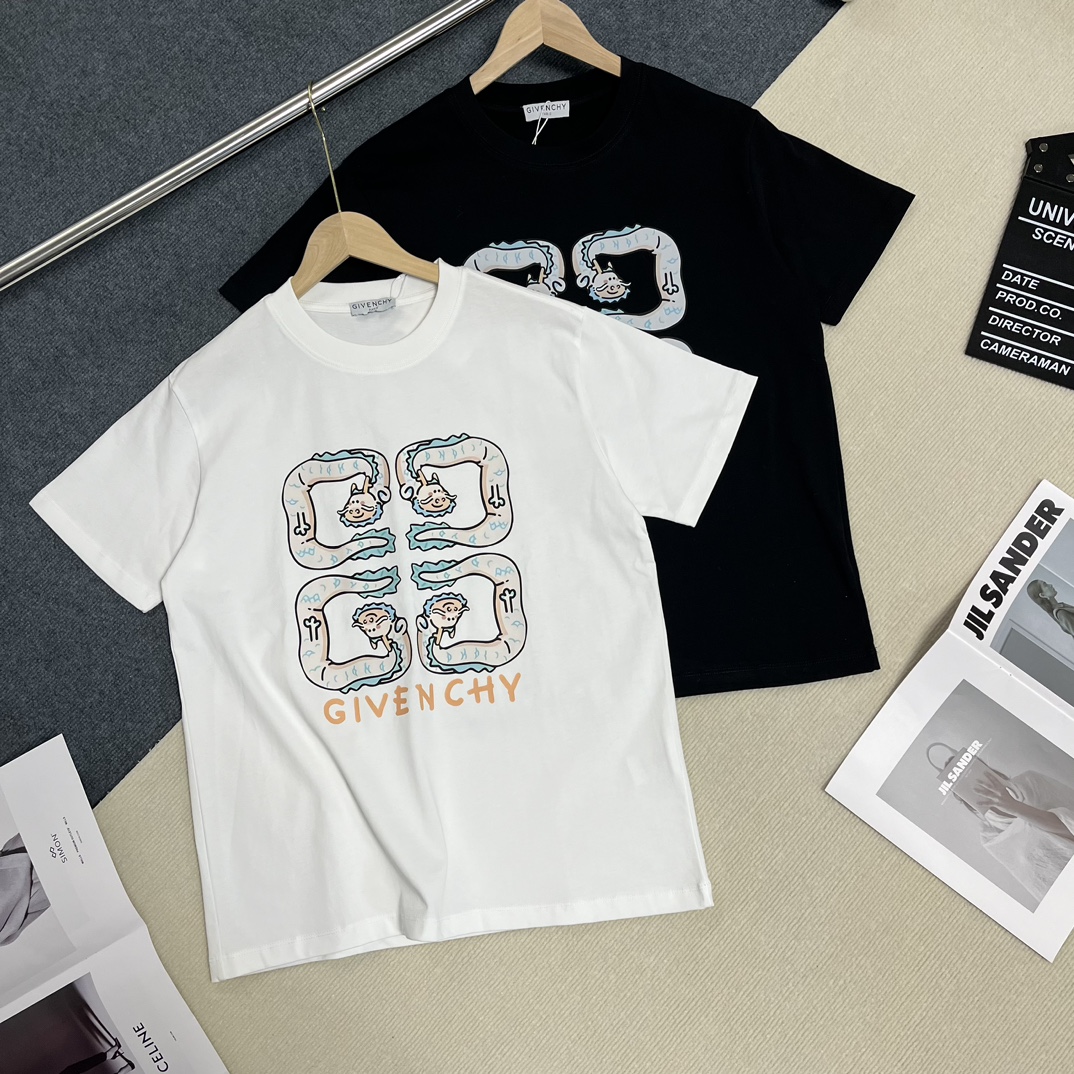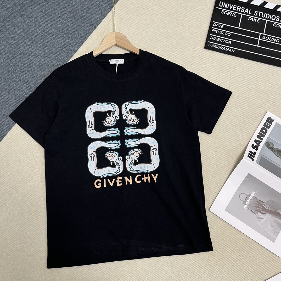 GIVENCHY(ジバンシイ)春夏2024の新作偽物のおしゃれなlogoのプリントレジャーする半袖激安通販