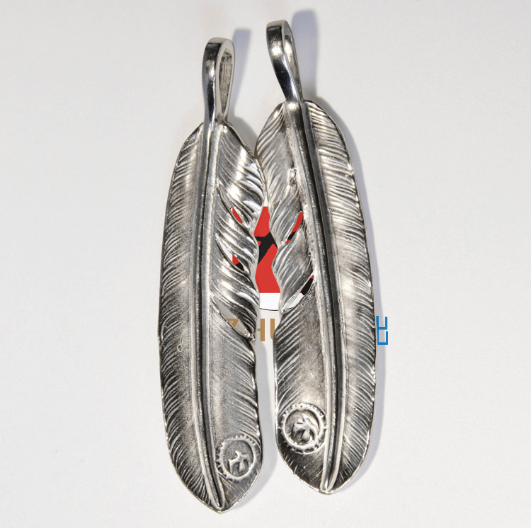 Goro’s(ゴローズ)高橋吾郎 偽物 XLサイズビッグポイントゴールドフェザーペンダント925純銀男女goros手作りシルバーアクセサリー