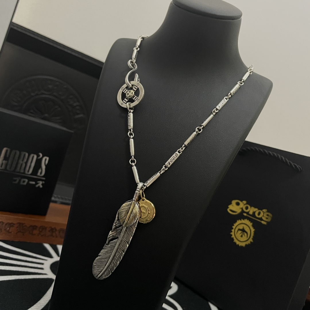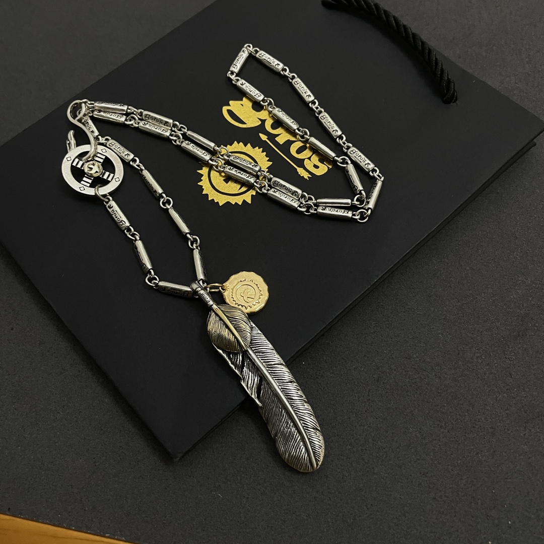 Goro’s(ゴローズ) 高橋吾郎 芸能人 n級品 クラシック羽根ダブルペンダント竹節アルファベットネックレス