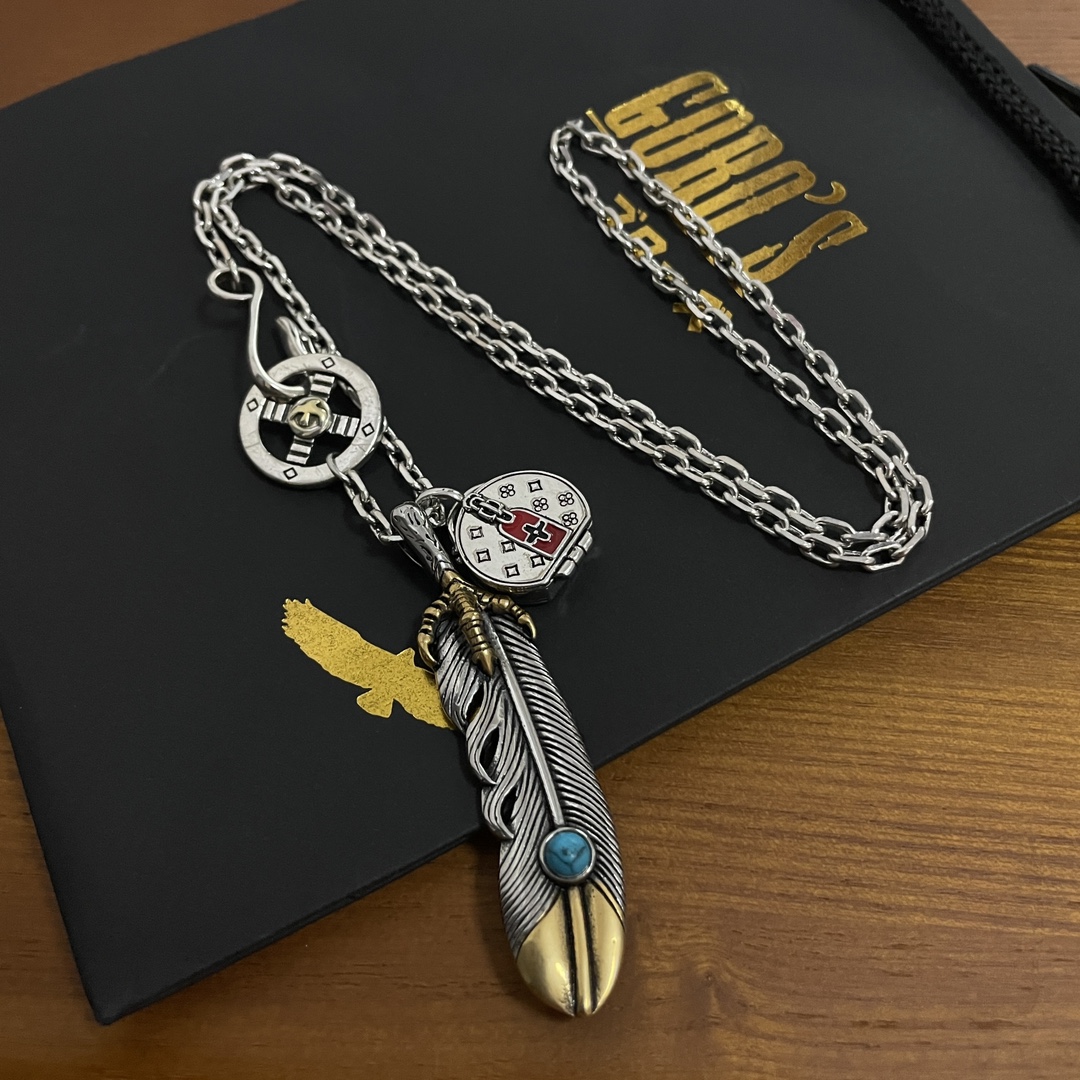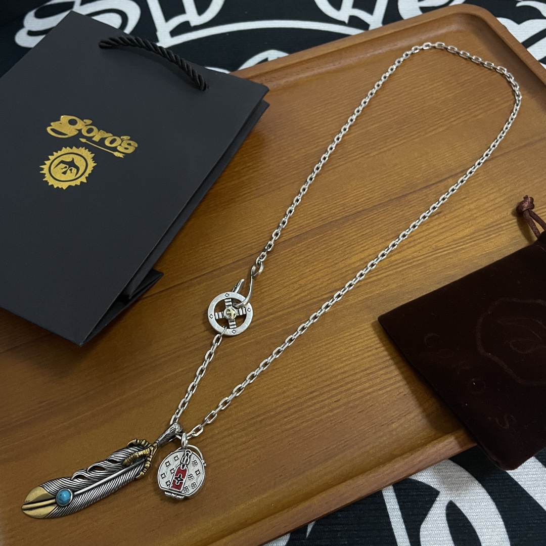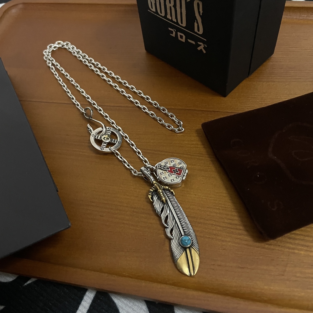 Goro’s(ゴローズ)高橋吾郎トレンドシルバーアクセサリー925純銀フェザーペンダントネックレス