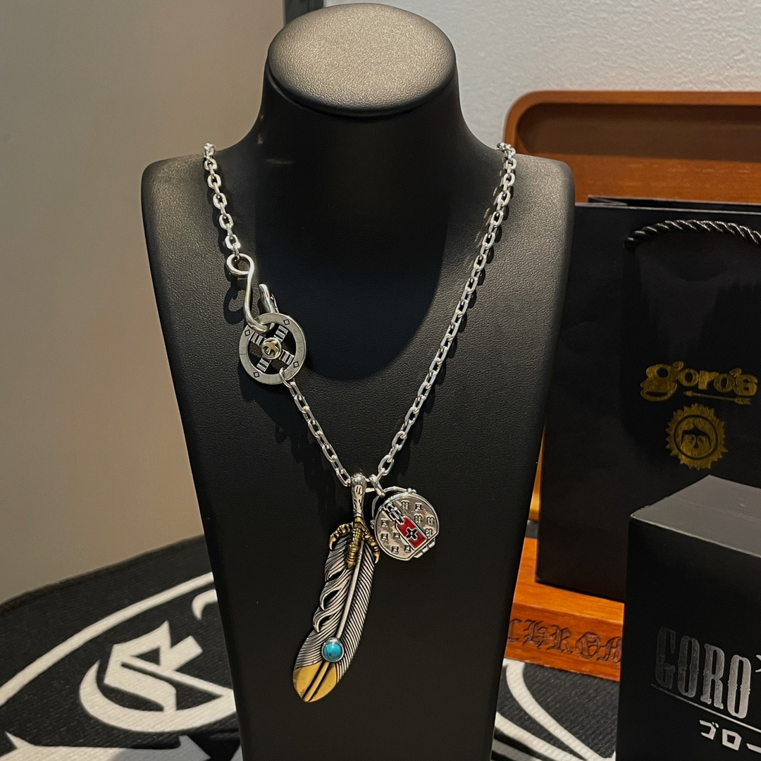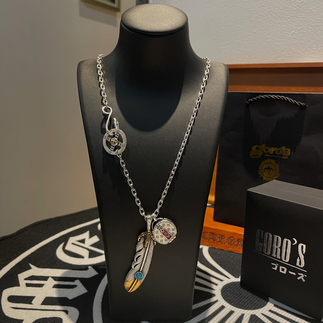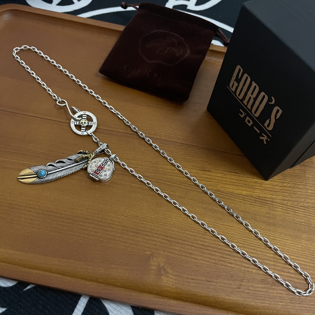 Goro’s(ゴローズ)高橋吾郎トレンドシルバーアクセサリー925純銀フェザーペンダントネックレス