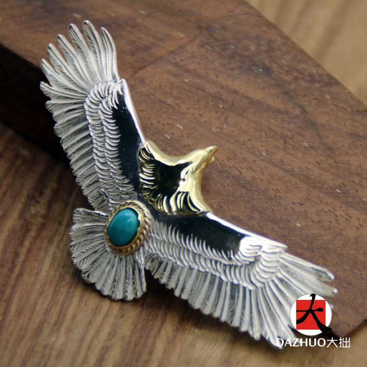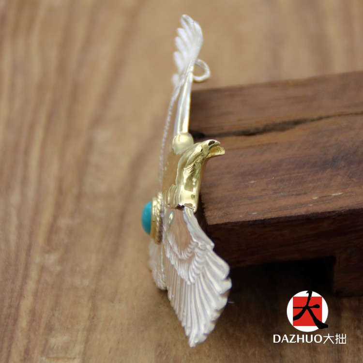 入手困難 ゴローズ コピー 手作りシルバーアクセサリー18kゴールドヘッド大鷹ペンダント