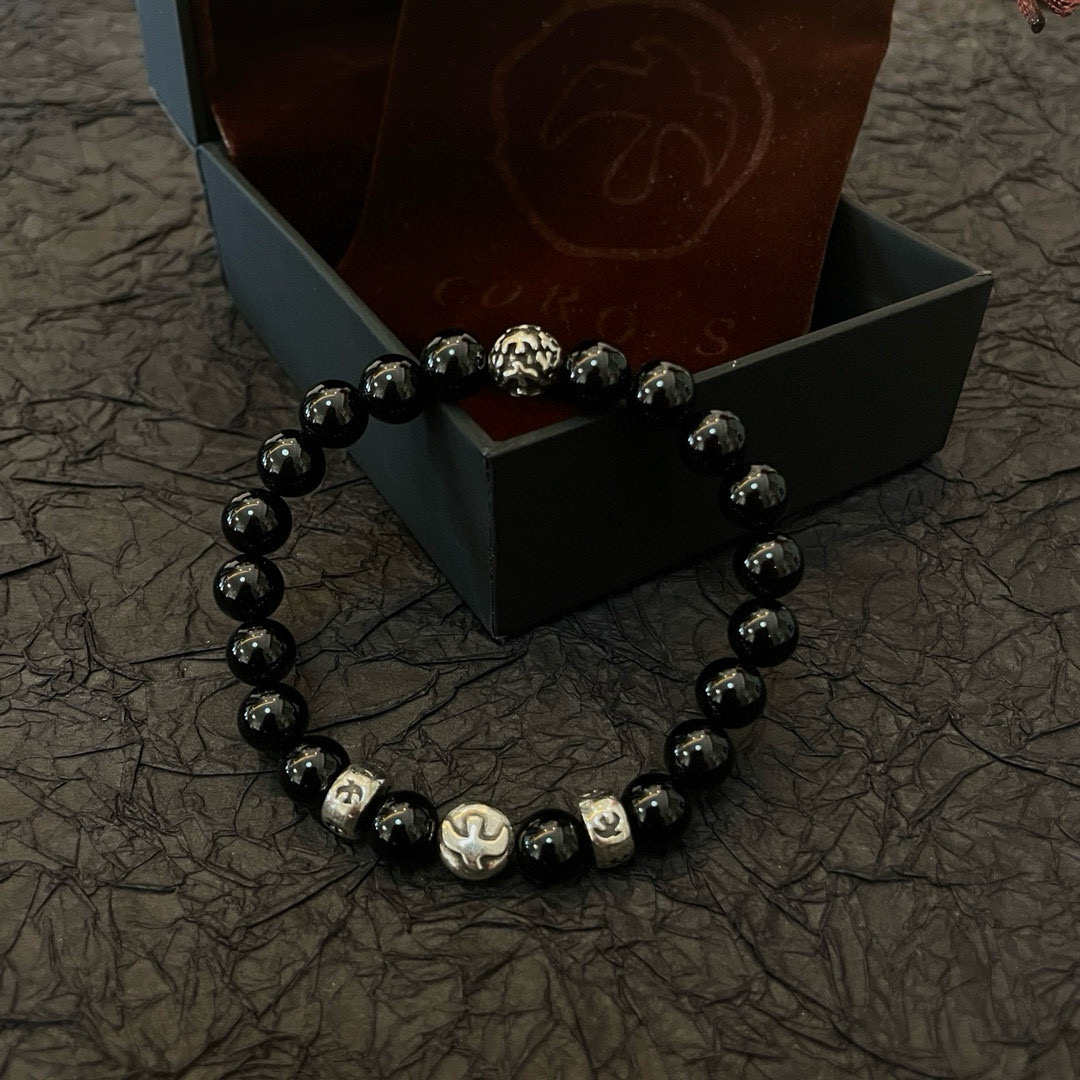 ゴローズ(Goro’s)のn級コピー オニキスブレスレットは、深みのある艶やかな黒が印象的な天然オニキスを使用。間に配置されたシルバー925の刻印ビーズがアクセントとなり、無骨さと上品さを兼ね備えたデザインに仕上がっています。程よい重量感としなやかな装着感があり、手首を引き締めながらも自然に馴染みます。n級コピー モデルとして高精度に再現されたパーツバランスは、まるで本格派の正規仕様のよう。ストリートからモードまで幅広く合わせやすく、男女問わず人気の高いゴローズ定番アクセサリーです。