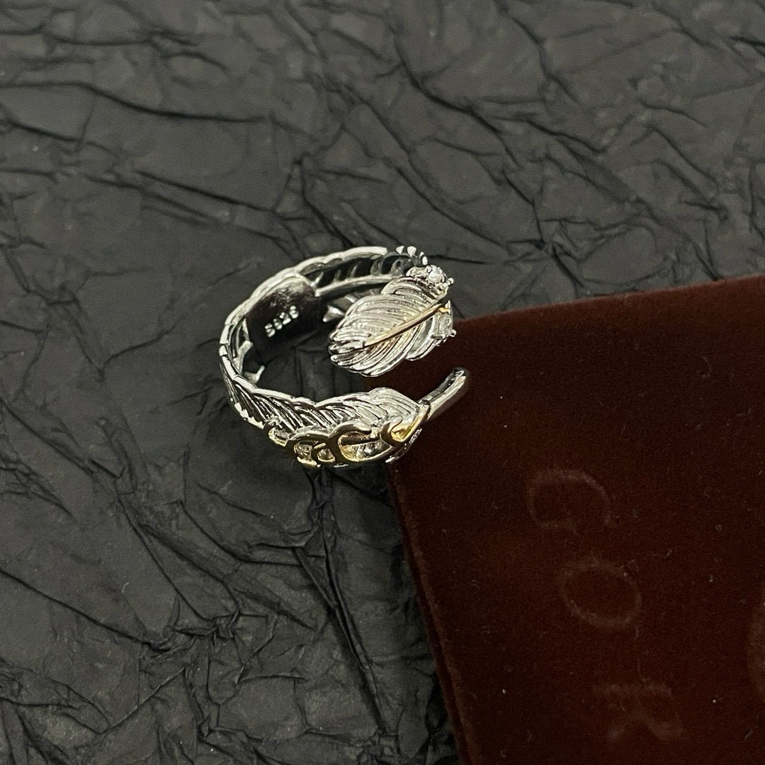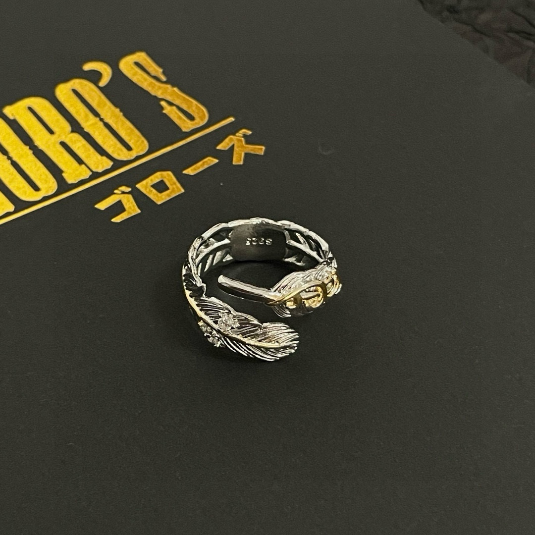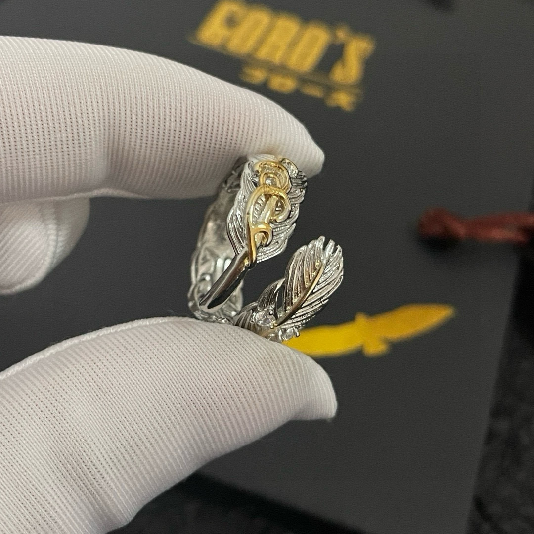 ゴローズ(Goro’s)の芸能人偽物 フェザークロスリングは、ブランドを象徴する羽根とクロスの融合デザインが魅力。立体的な造形が際立ち、指元に重厚感と高級感を与えます。ゴールドとシルバーのツートーンが上品に輝き、角度によって異なる表情を見せるのも特徴。芸能人偽物 モデルながら、彫刻の精度や表面の磨き上げまでこだわり抜かれた高再現度の仕上がり。ファッション性と個性を兼ね備えたアイテムとして人気を集めています。