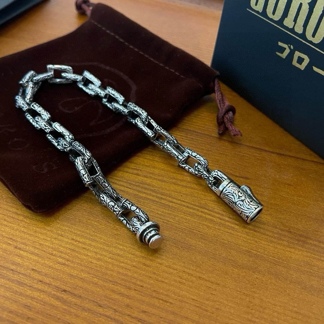 ゴローズ(Goro’s)のブランド コピー チェーンリンクブレスレットは、緻密な彫刻を施したシルバーチェーンが特徴。各リンクに刻まれた模様が光を受けるたびに輝き、重厚感ある印象を与えます。マットな質感と程よいボリューム感が腕元を際立たせ、カジュアルにもフォーマルにも合わせやすいデザイン。ブランド コピー モデルながら、接続部や彫刻の精度まで忠実に再現されており、リアルな質感を実現。高品質仕上げで長時間の着用にも快適です。