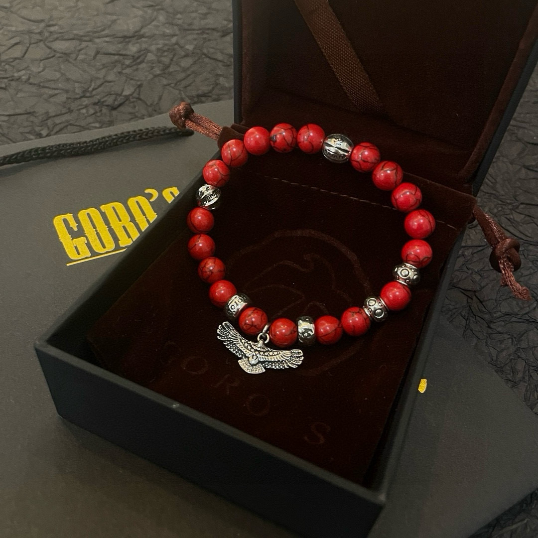 鮮やかなレッドビーズにイーグルモチーフを組み合わせた本款は、ゴローズらしい力強さと象徴性を兼ね備えたデザインです。ビーズ一粒ごとの模様や色の深み、シルバーパーツの立体感まで細部にこだわり、スーパーコピー 優良サイト水準の完成度を実現。単体でも存在感があり、重ね付けのアクセントとしても活躍します。ゴローズ(goro’s)スタイルを腕元で楽しみたい方におすすめのブレスレットです。