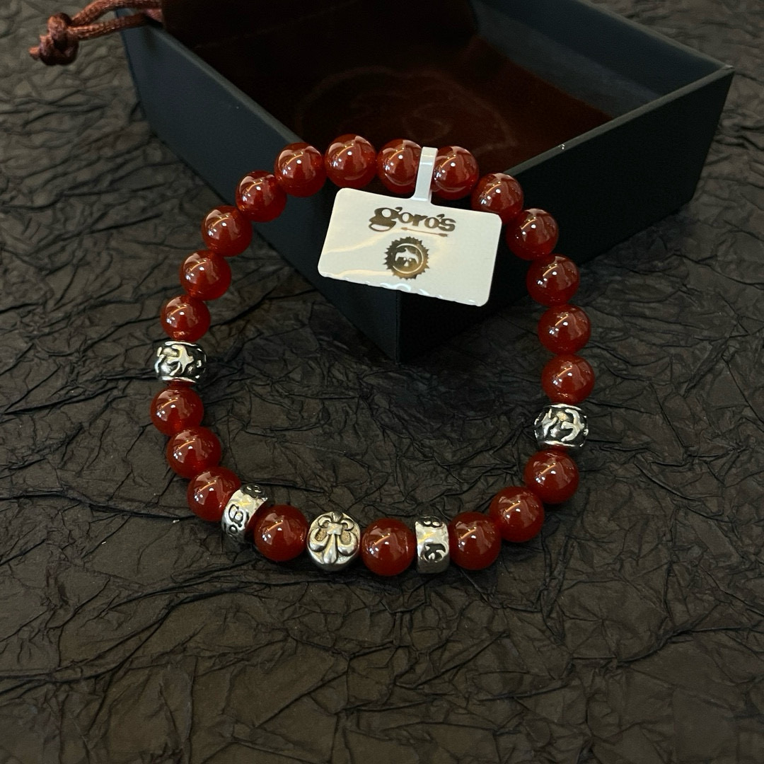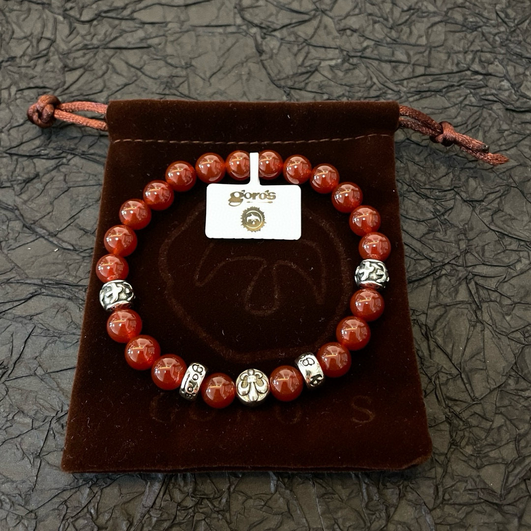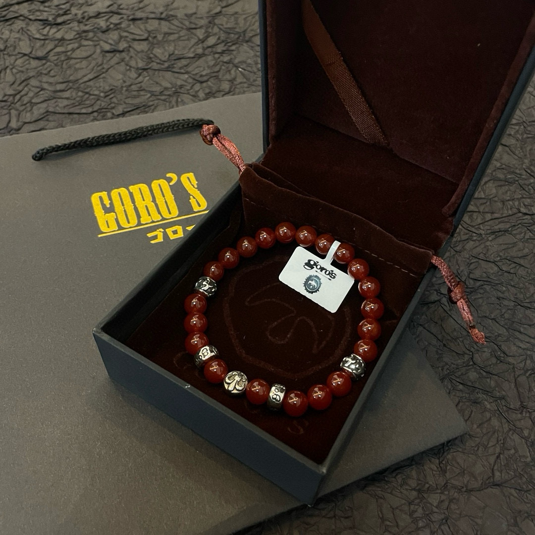 赤みのあるビーズにシルバーパーツを組み合わせたブレスレットは、ゴローズらしい無骨さと色気を兼ね備えています。ブランド コピーとして、ビーズの艶感やサイズバランスにも配慮し、全体の統一感を重視。単体での着用はもちろん、バングルや時計との重ね付けにも相性が良く、季節を問わず活躍するアイテムです。