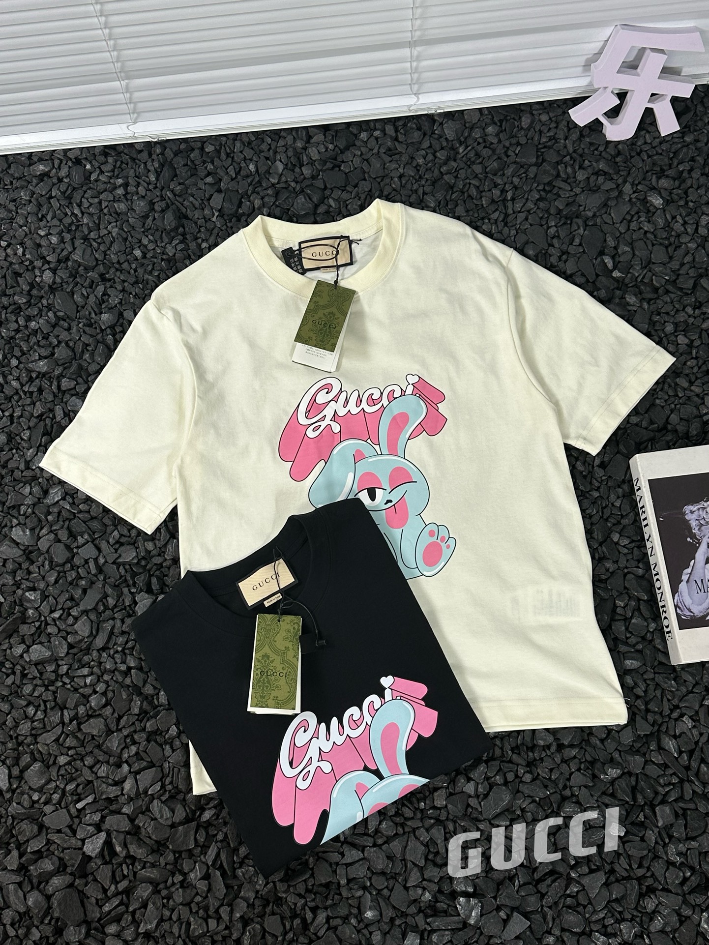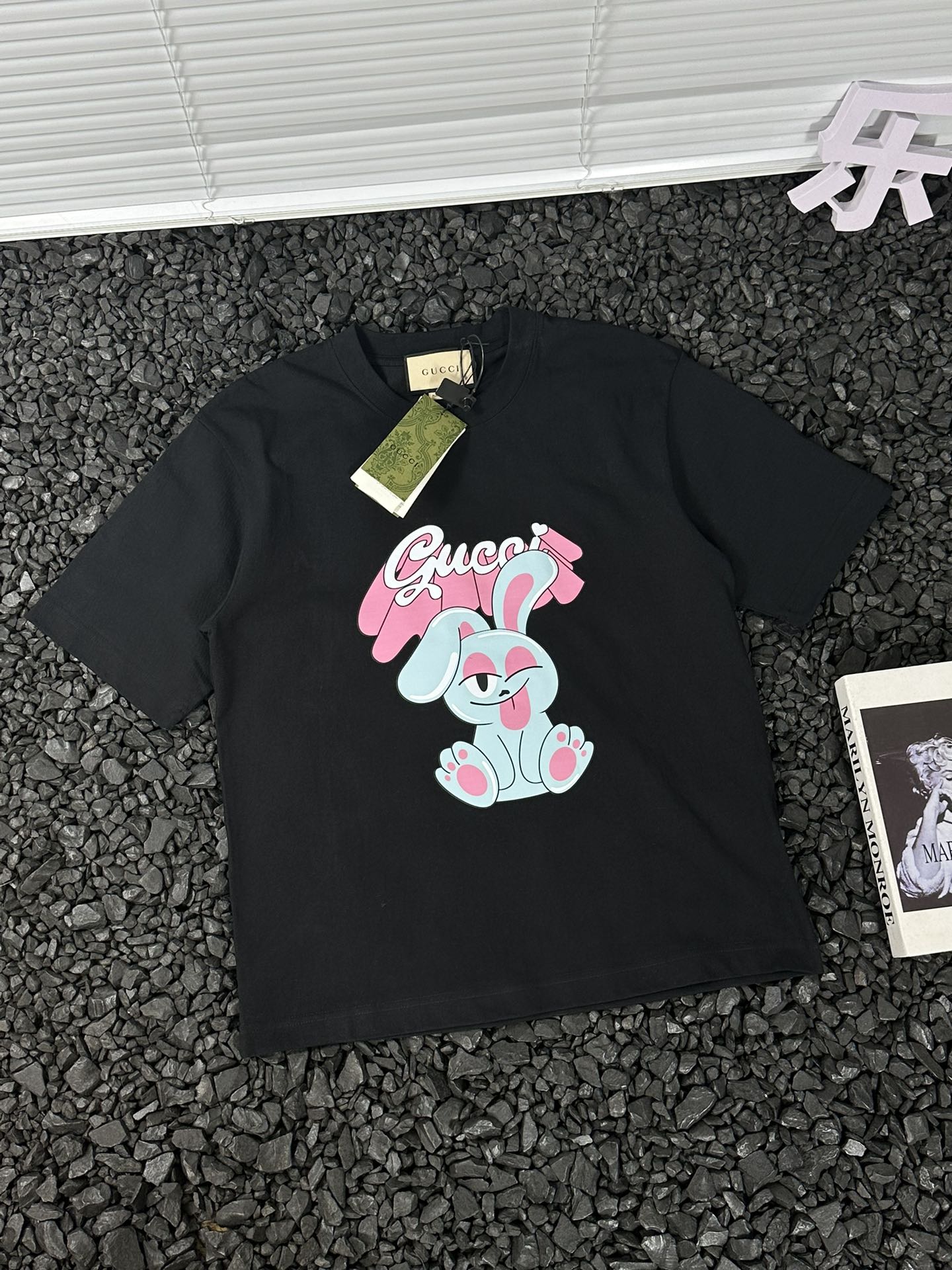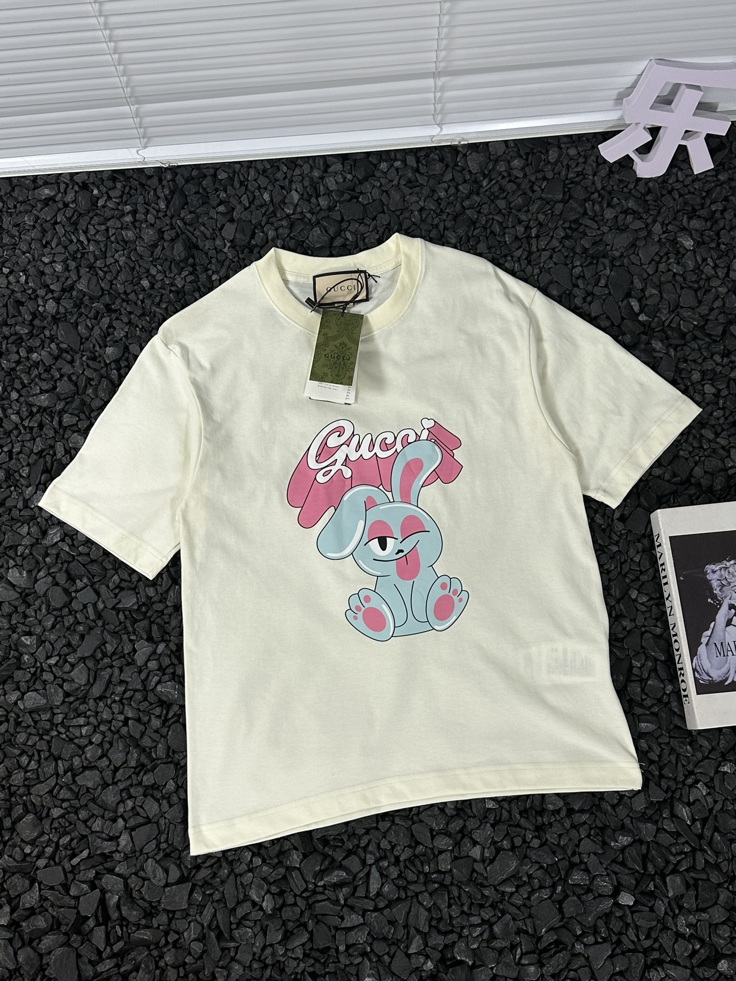 GUCCI (グッチ) n級品 芸能人 夏の新作子供の趣ピンクブルーウサギアルファベットプリント半袖