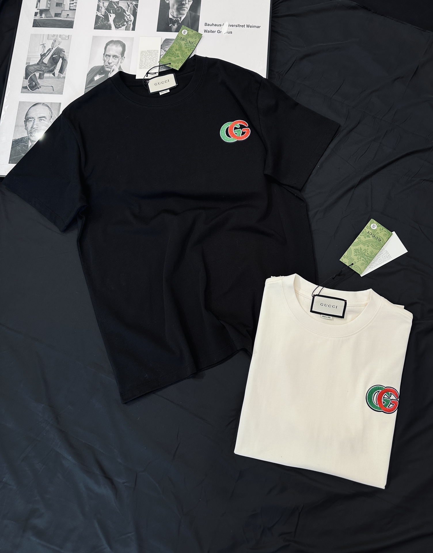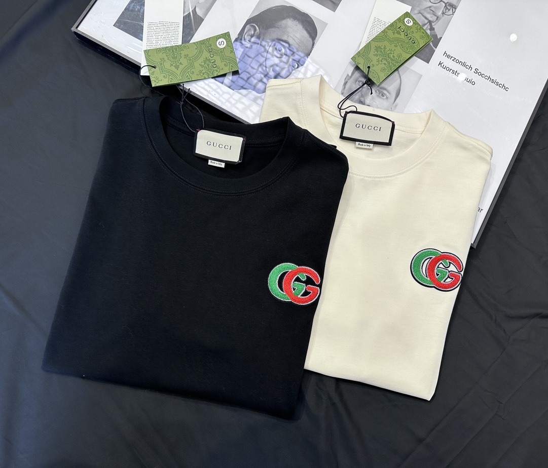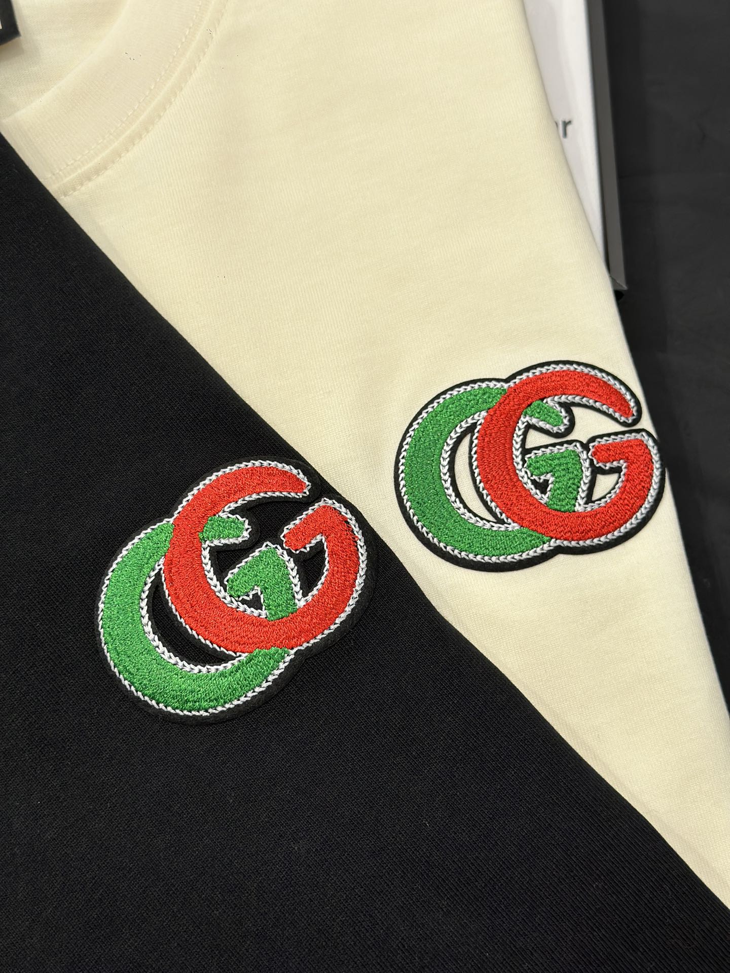 GUCCI (グッチ) 芸能人 スーパーコピー レッドグリーンロゴプリントオシャレカジュアルTシャツ