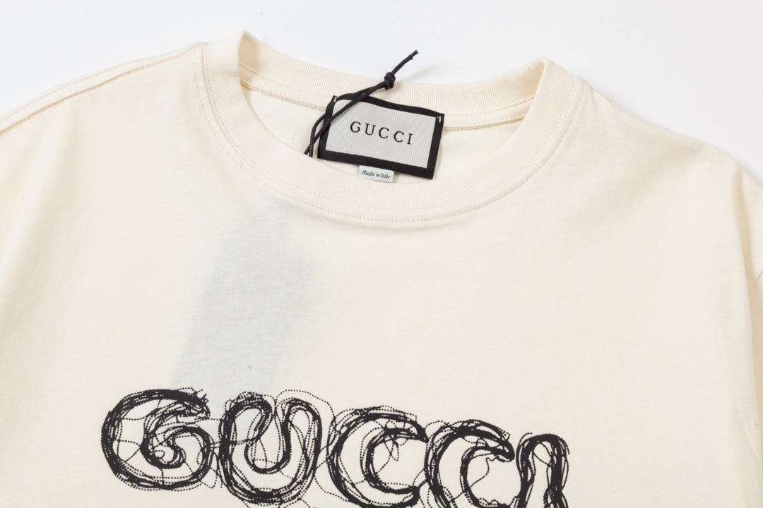 GUCCI (グッチ) 偽物 アルファベットロゴプリントオシャレカジュアルTシャツ 通販