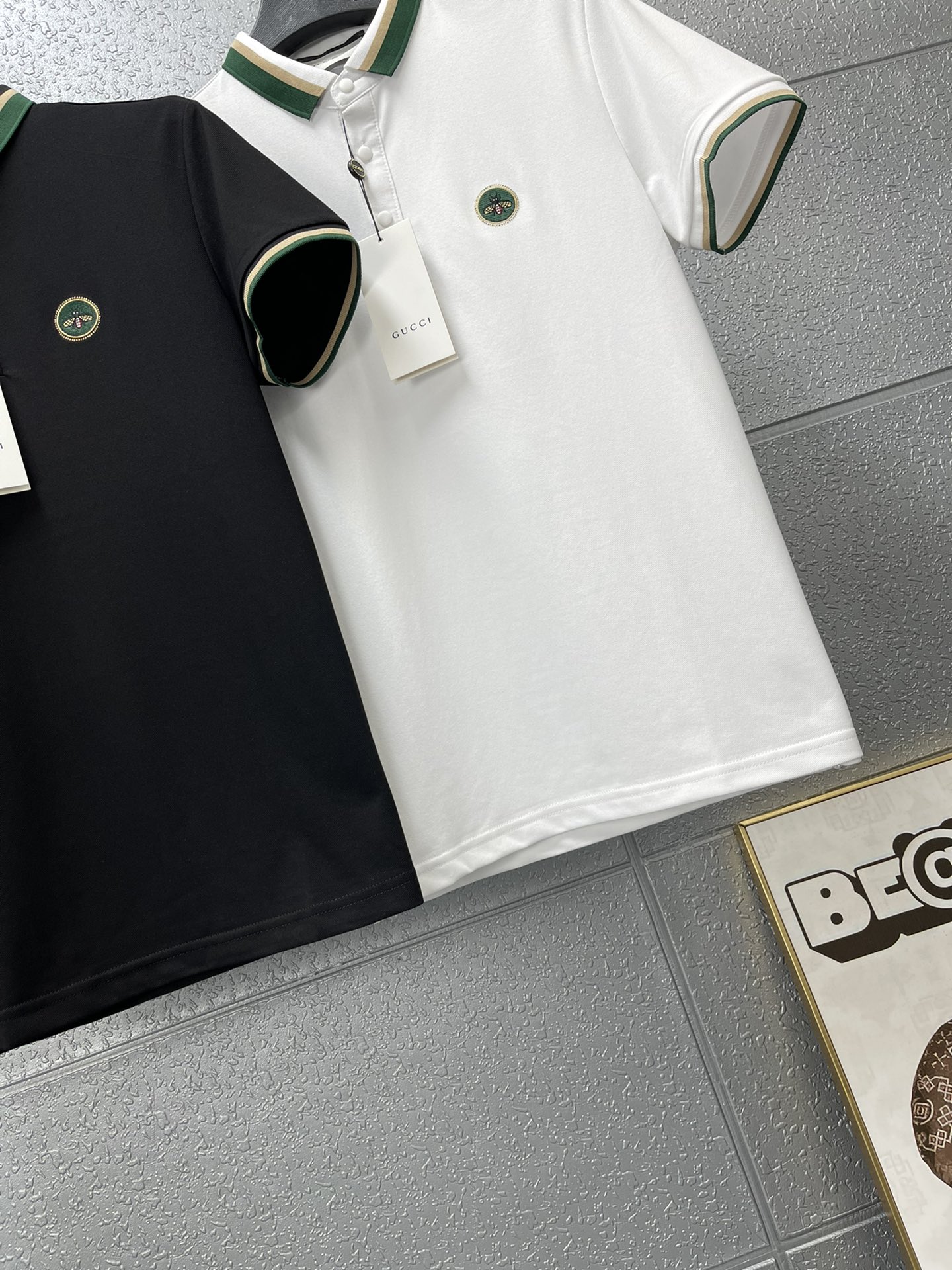 Gucci(グッチ)激安販売 スーパーコピー 新作メンズカジュアルラペル胸元カラー蜂刺繍半袖ポロシャツ