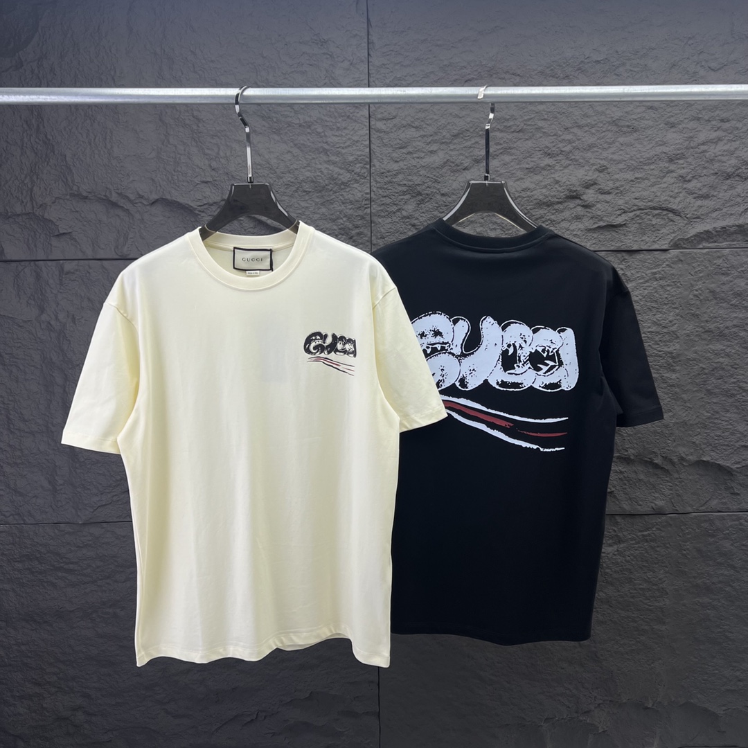 Gucci(グッチ) コピー トレンドアルファベット落書きプリントカジュアル半袖Tシャツ