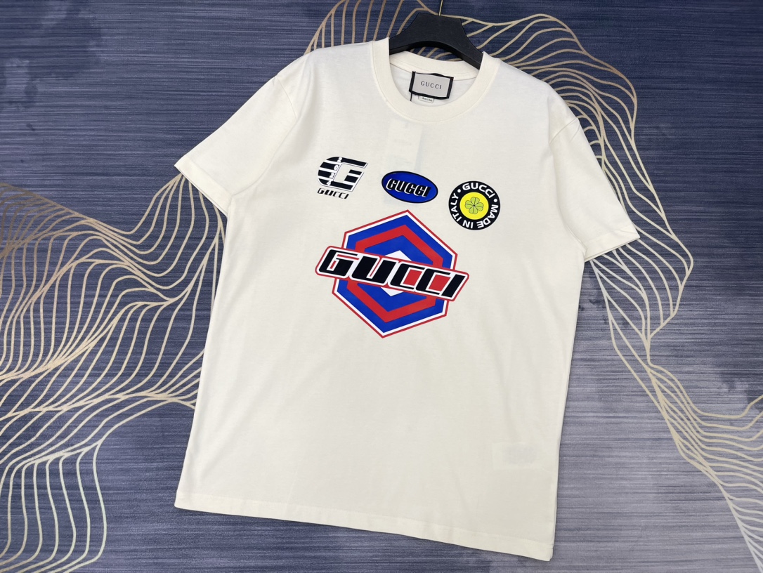 Gucci(グッチ) 2024春夏新作 スーパーコピー カラーロゴプリントラウンドネック半袖Tシャツ