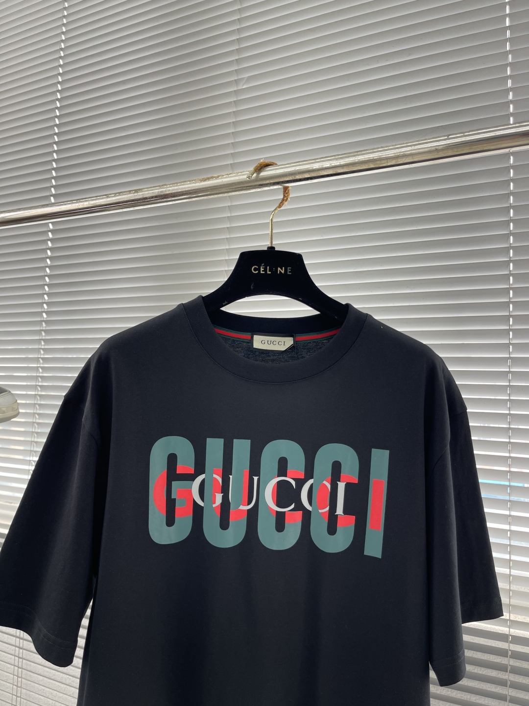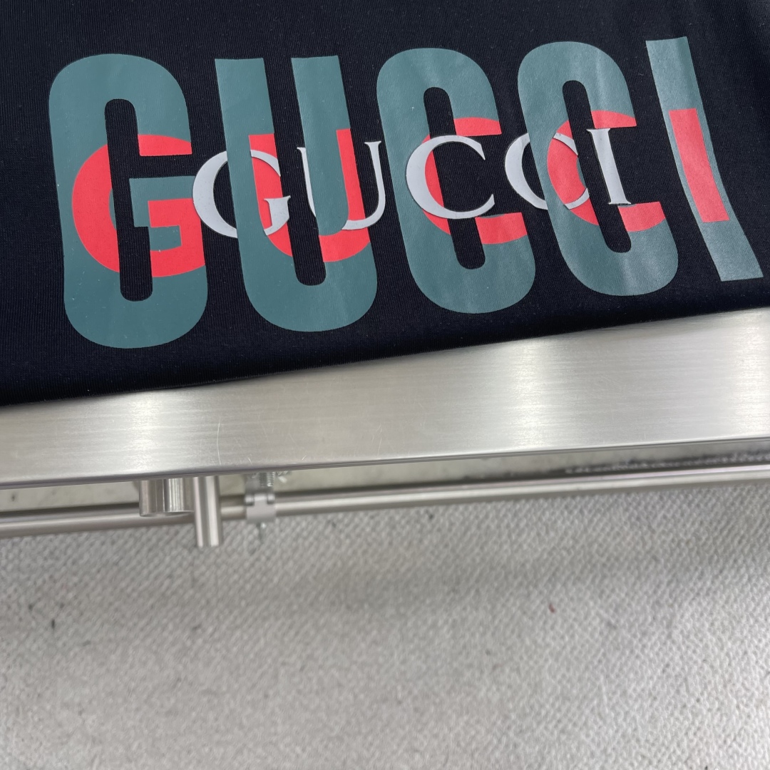 グッチ 偽物販売店 Tシャツ ブラックビッグロゴ 高品質カジュアル