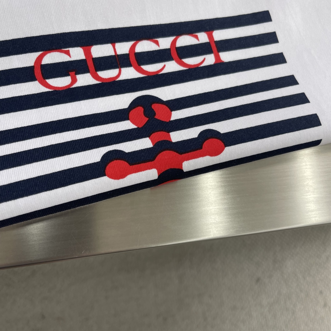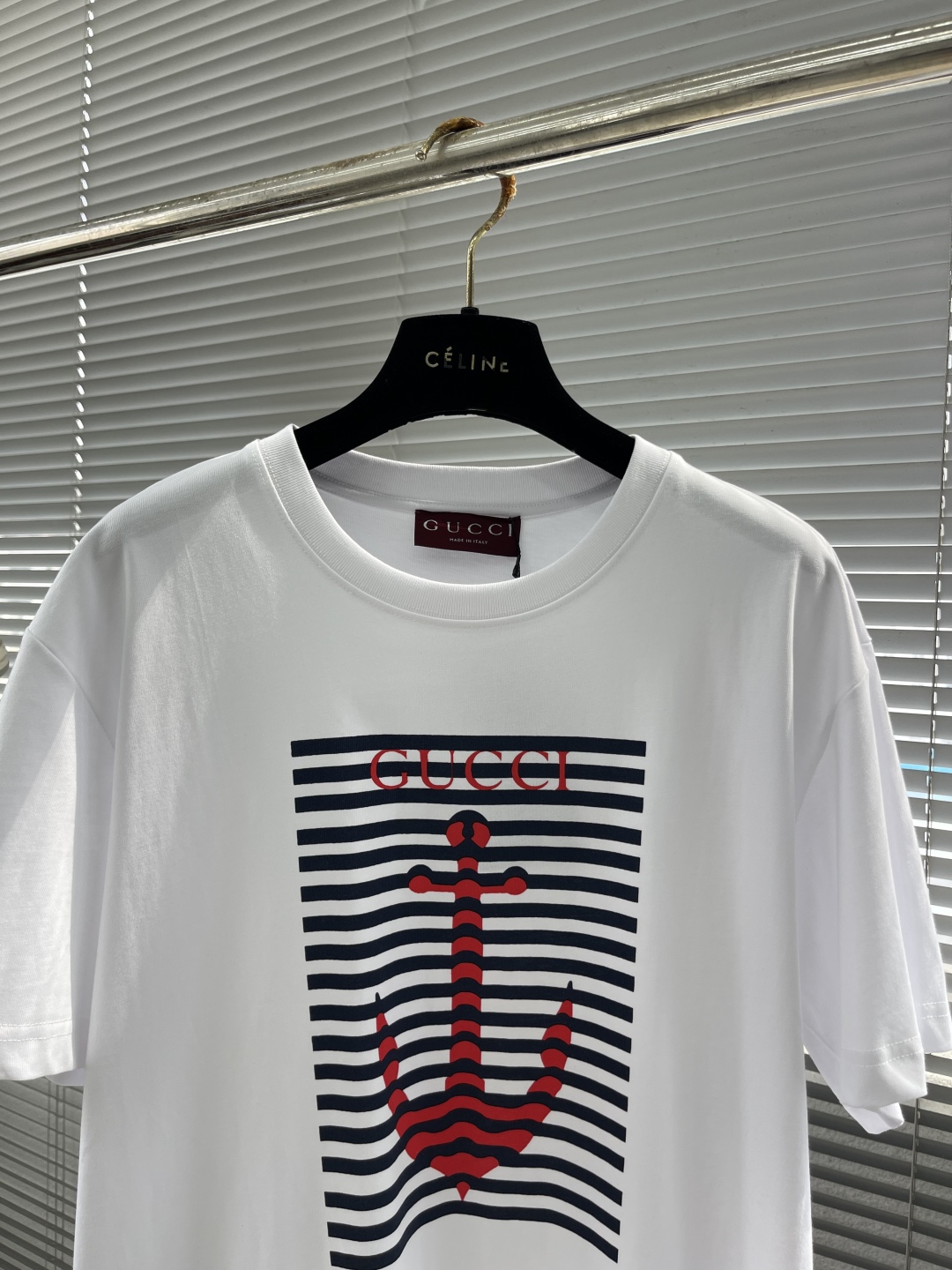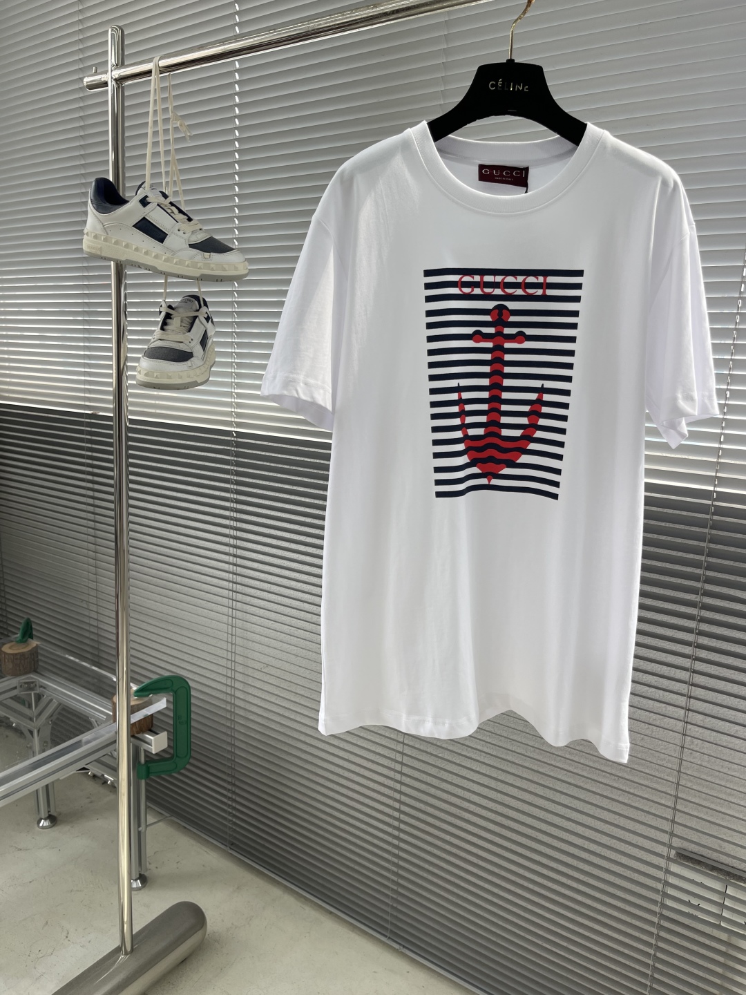 グッチ 偽物 ボーダー柄 アンカーロゴTシャツ ホワイト メンズ 夏服 カジュアル
