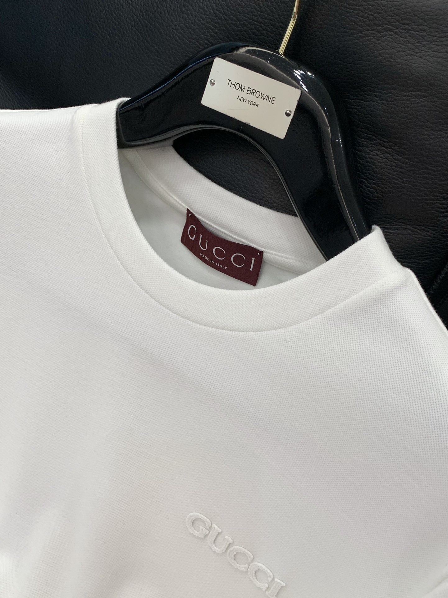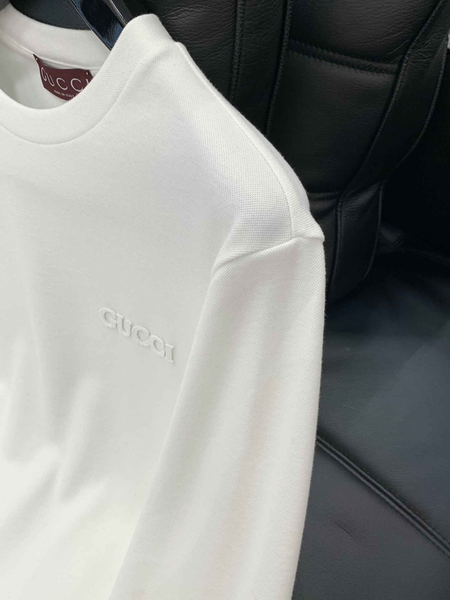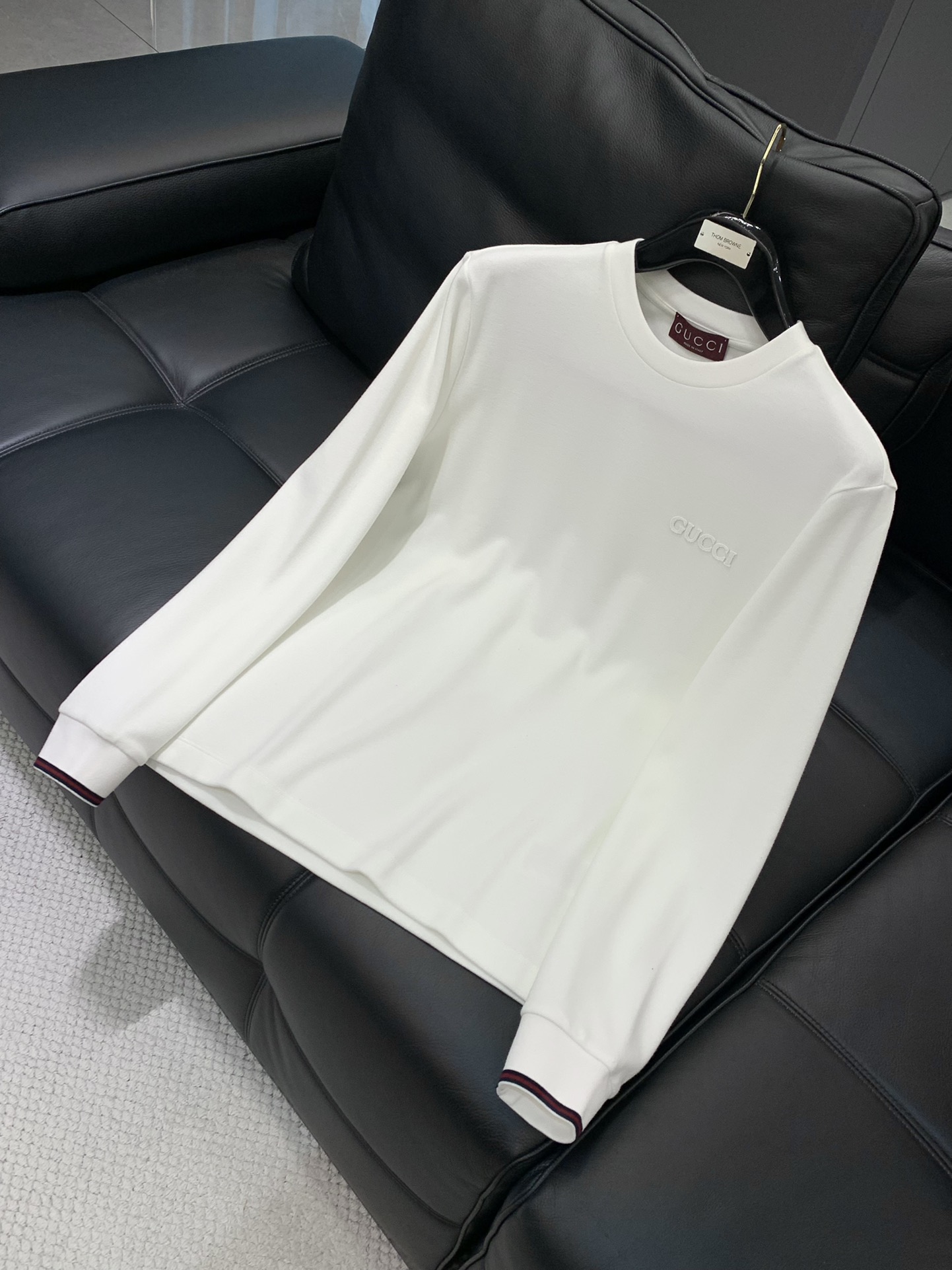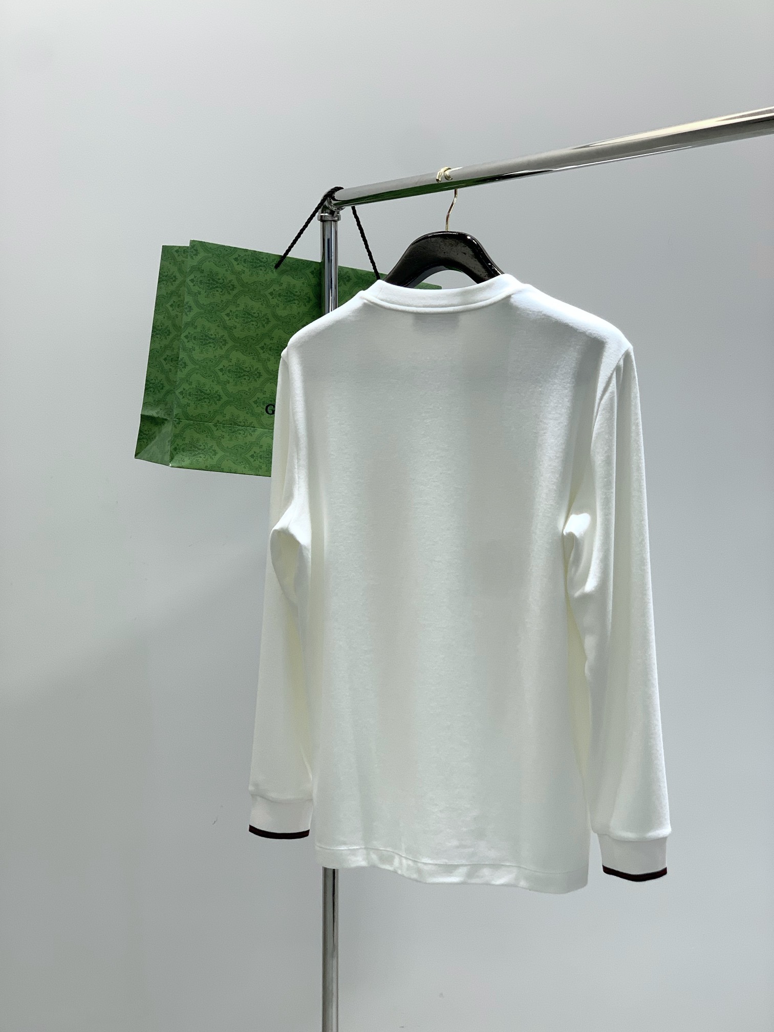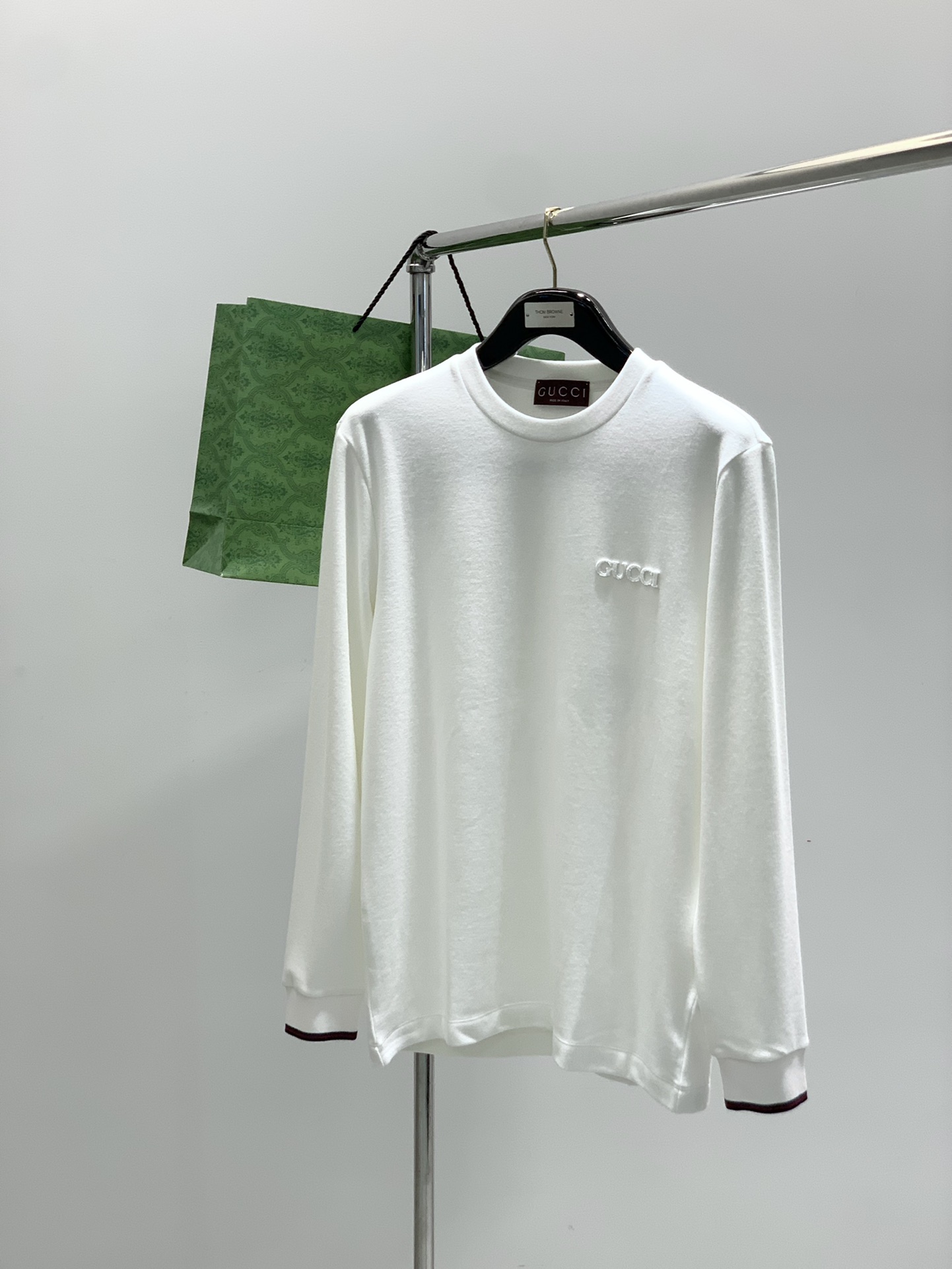 グッチ 激安通販 ホワイト長袖Tシャツ 刺繍ロゴ入り 定番カジュアルアイテム