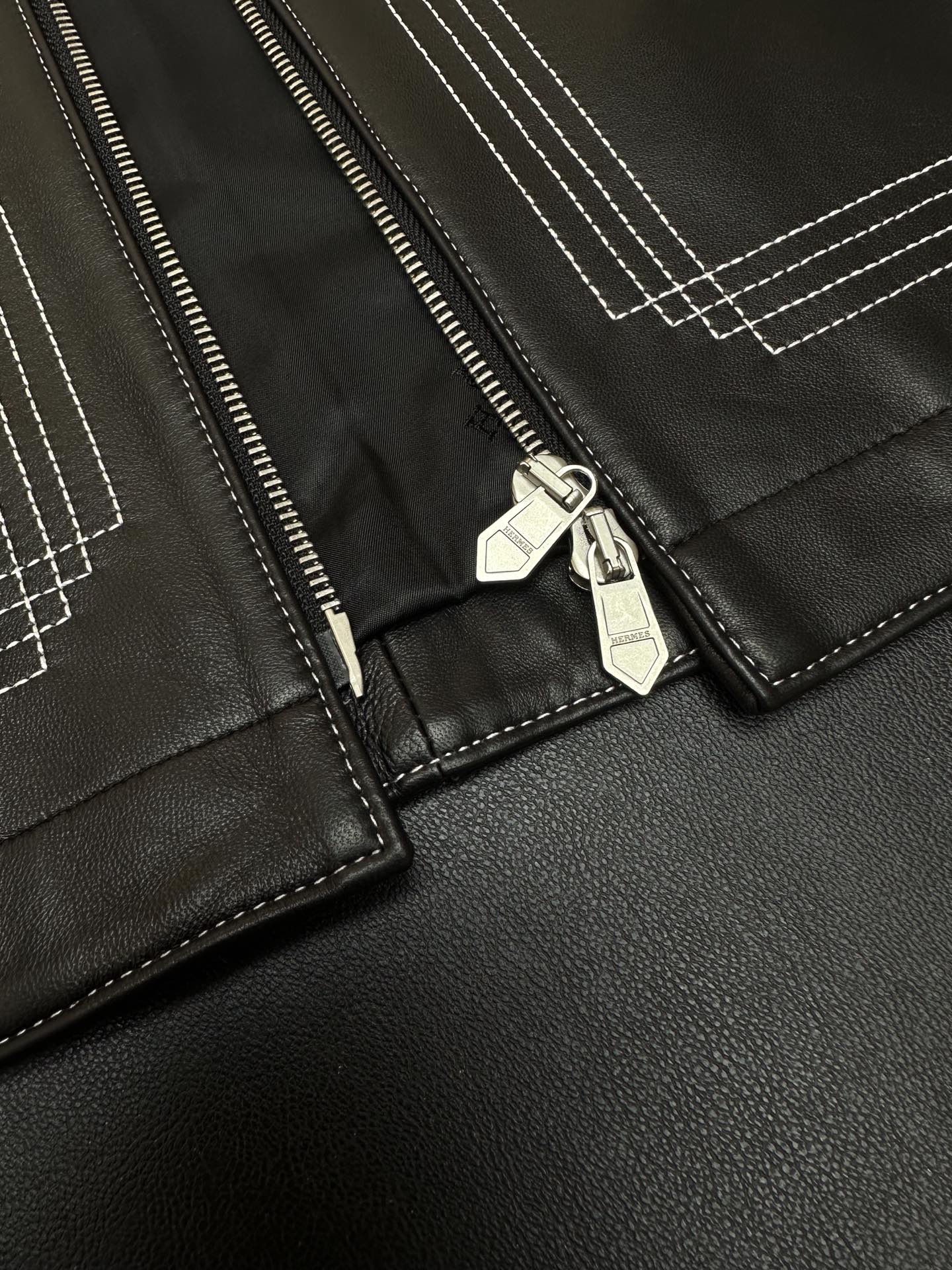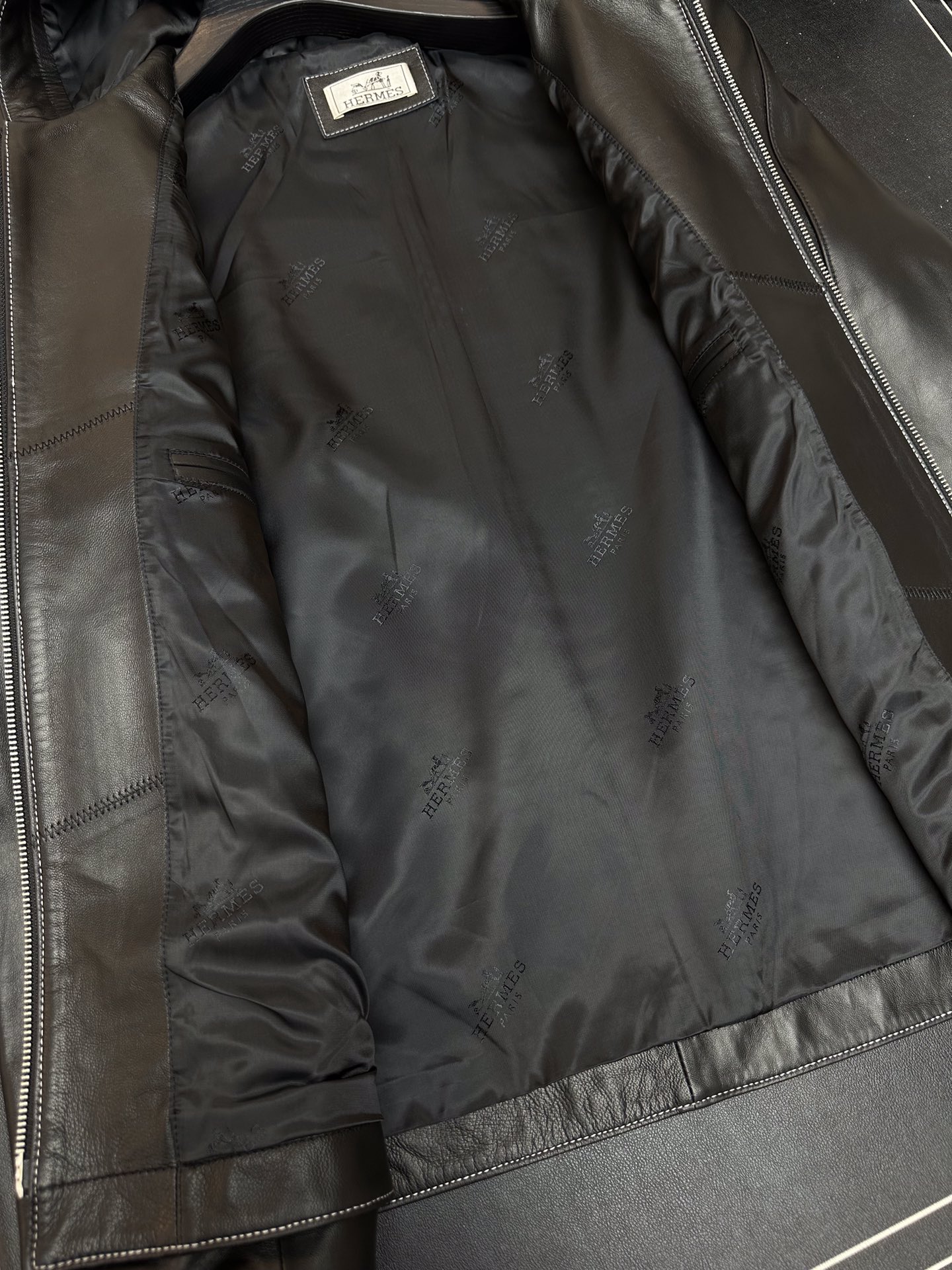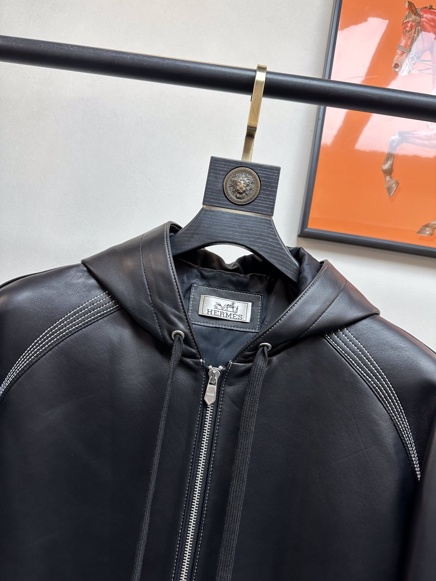 上質な素材採用 エルメス 偽物 フード付きレザージャケットコート