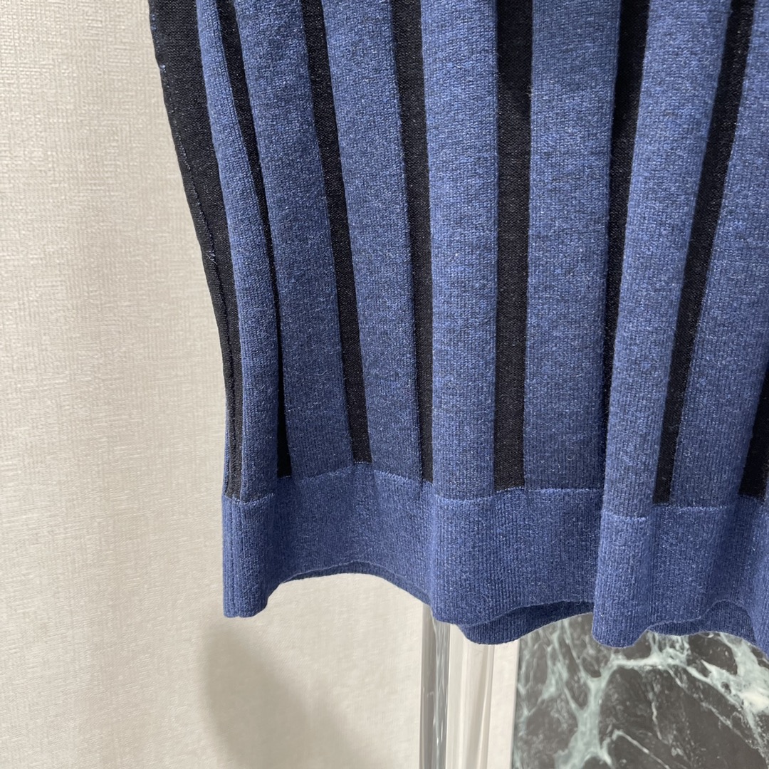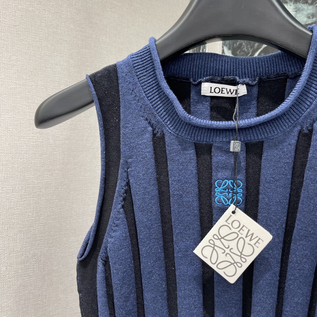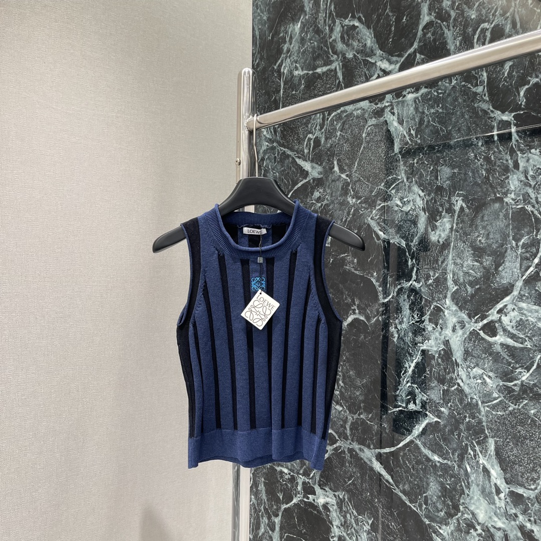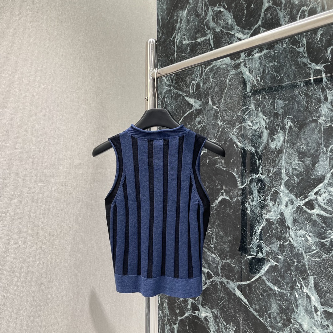 ロエベ(LOEWE)のスーパーコピー ノースリーブニットトップは、クラシックなネイビーカラーを基調にブラックのストライプを縦に配した視覚的にスタイルアップ効果のあるデザイン。首元や裾はリブ仕様で着心地がよく、シルエットはすっきりとした仕上がり。夏場は一枚で、秋冬にはジャケットのインナーとしても活躍します。丁寧な縫製と素材の質感は高級感を演出し、ラグジュアリーブランドならではの存在感を放つアイテムです。