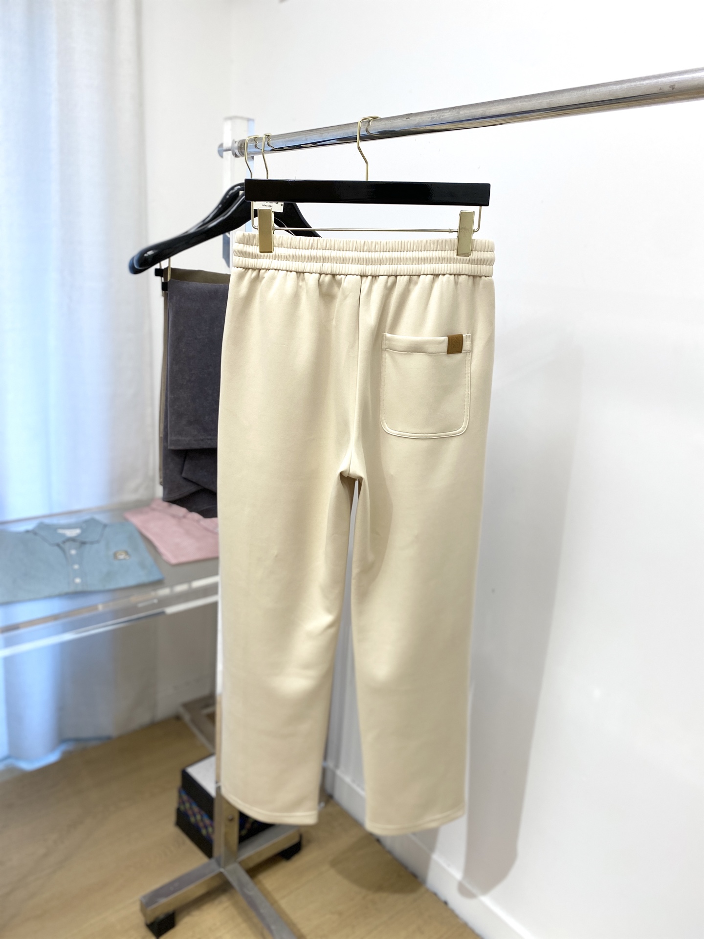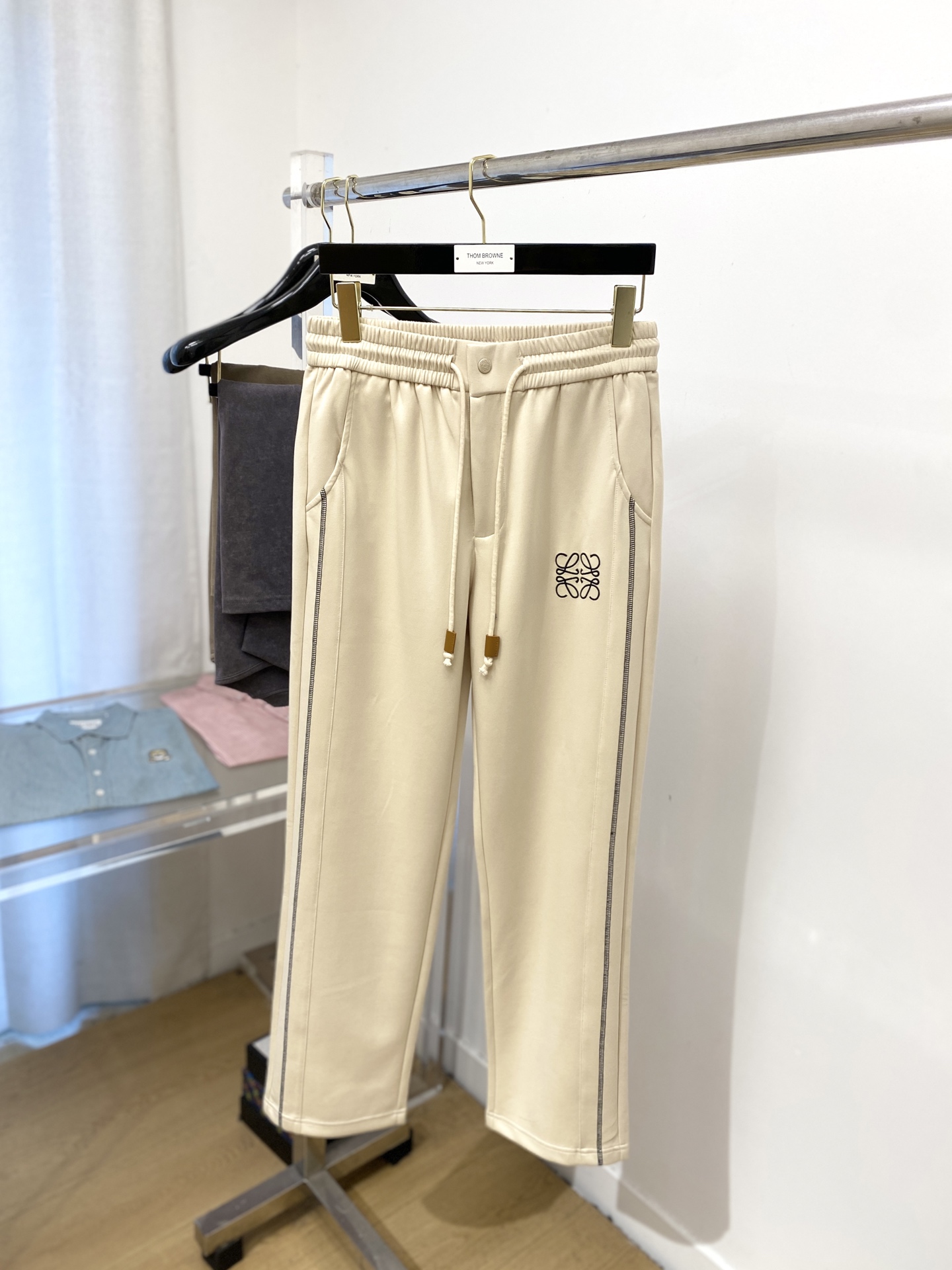 ロエベ ブランド コピー スウェットパンツ ベージュ ロゴ刺繍 カジュアル定番