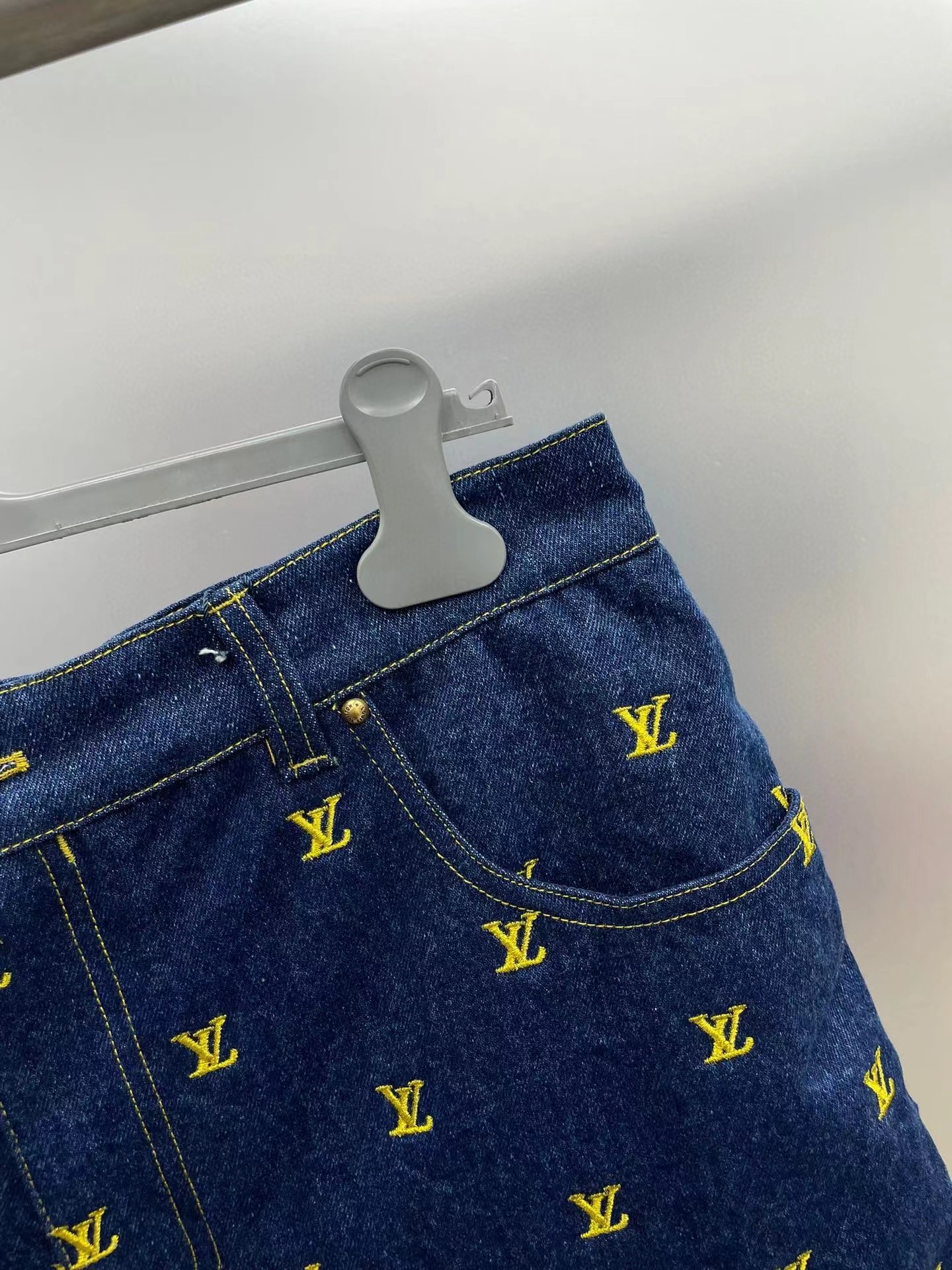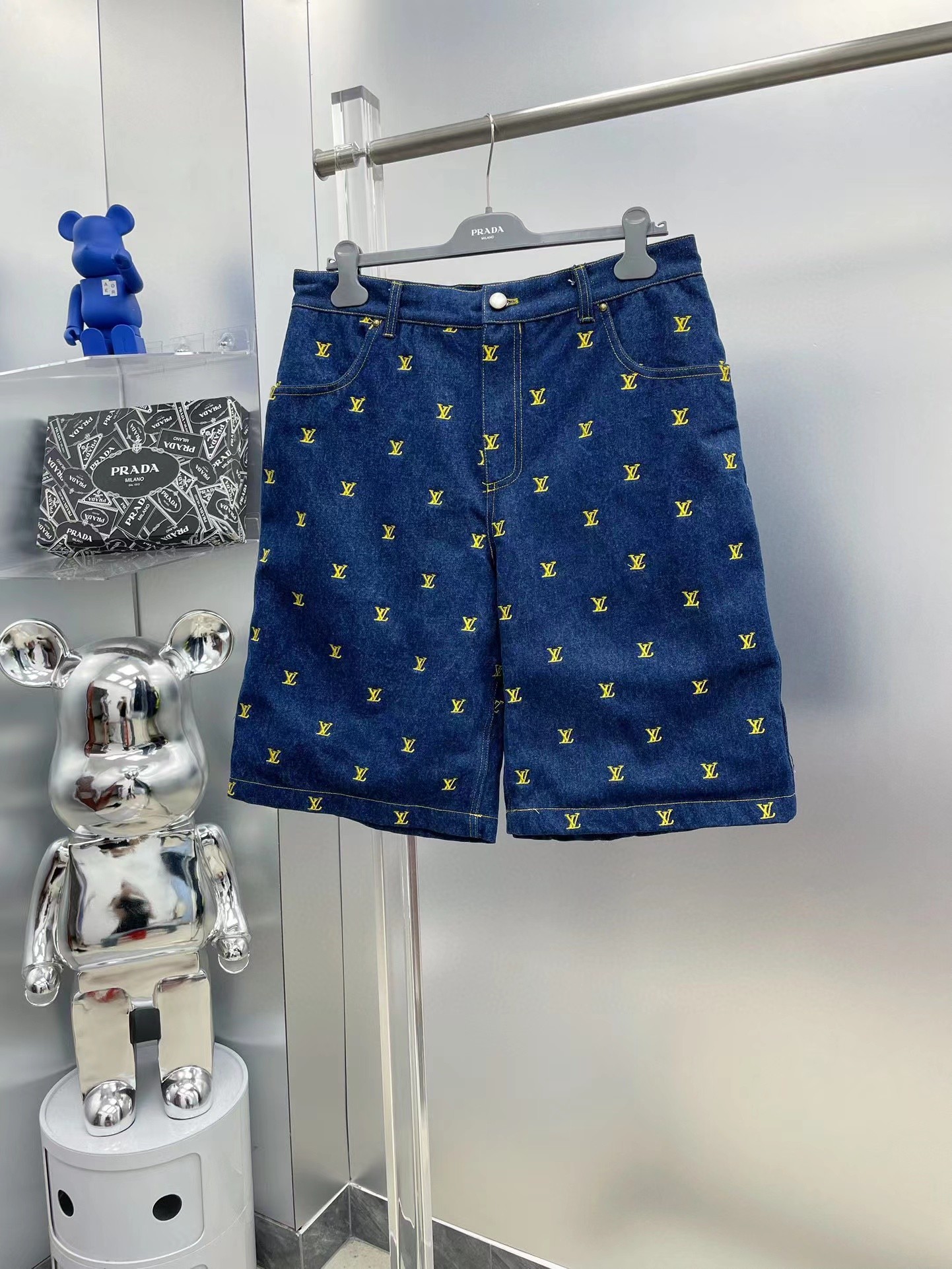 LOUIS VUITTON(ルイヴィトン)コピー ゴールドアルファベット刺しゅうショートパンツゆったりデニムショートパンツ
