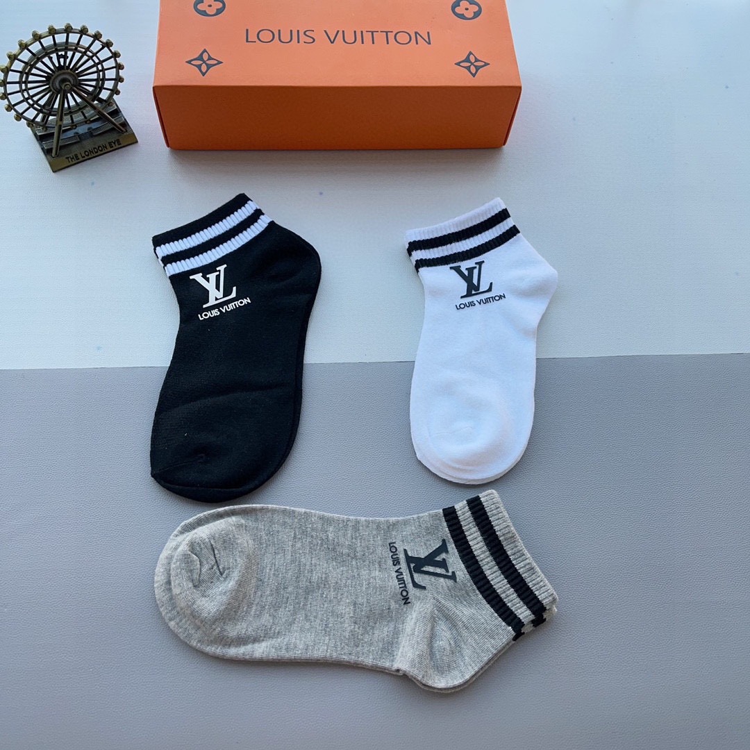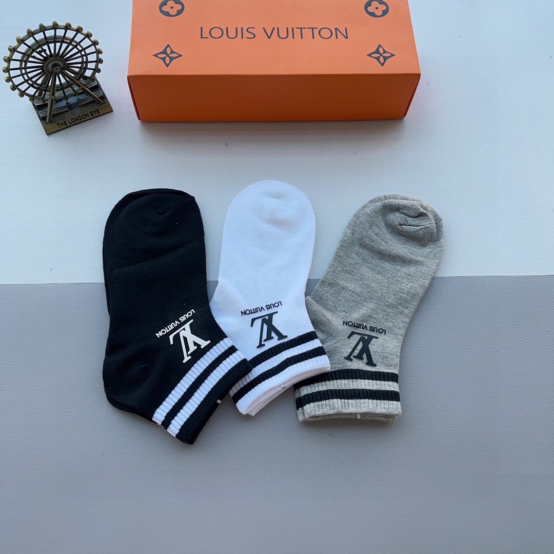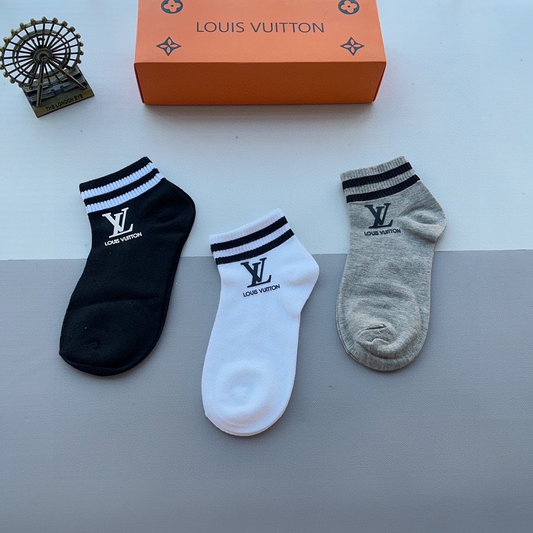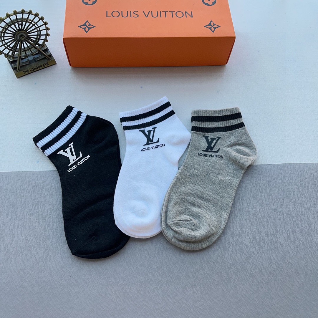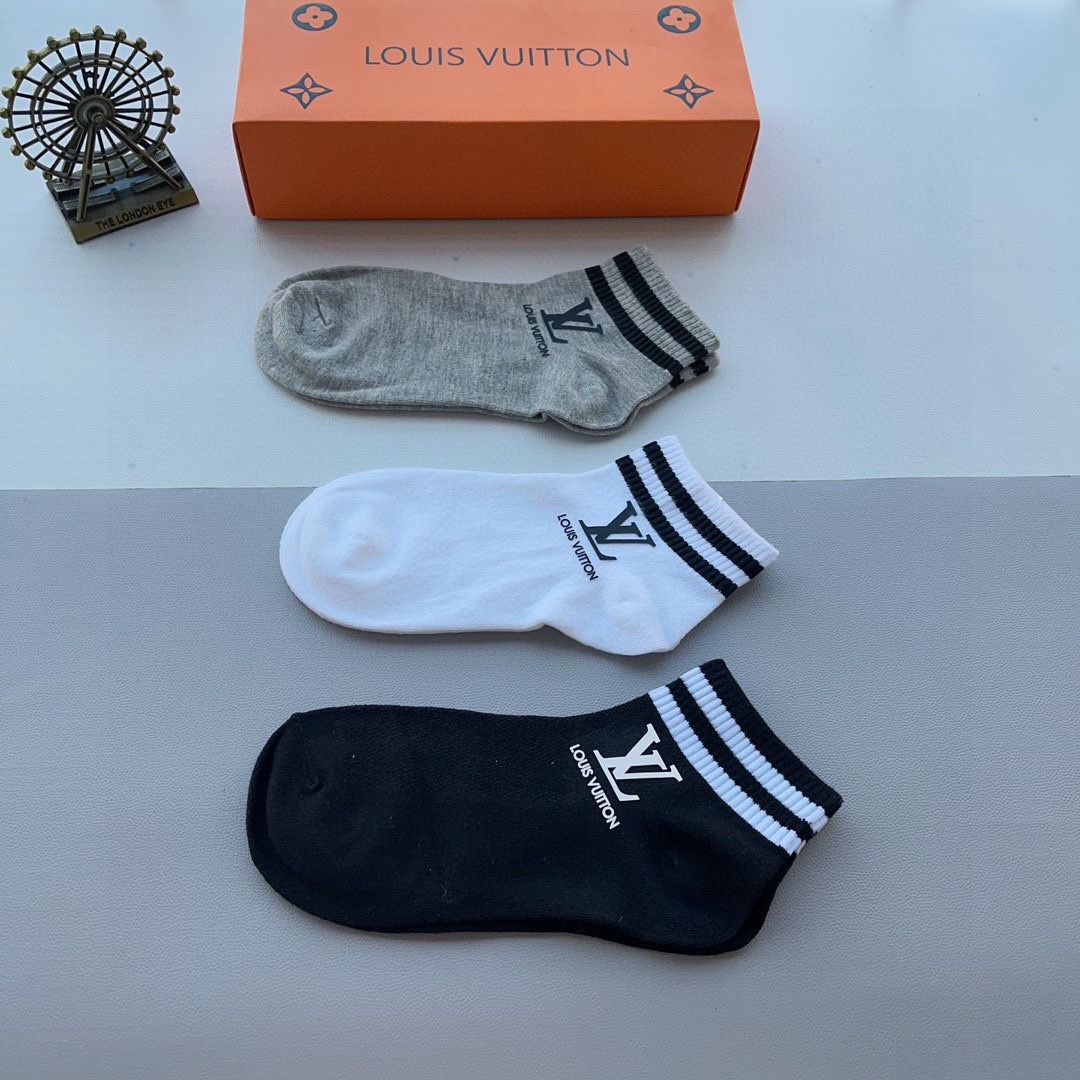 ルイヴィトン コピー 綿100%快適通気靴下3足組