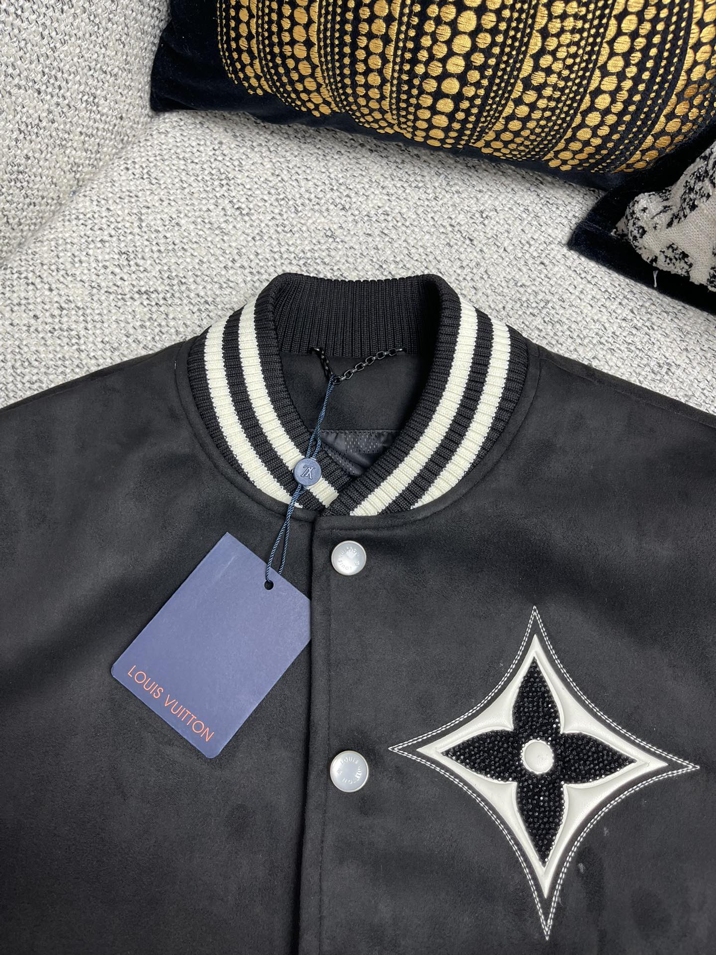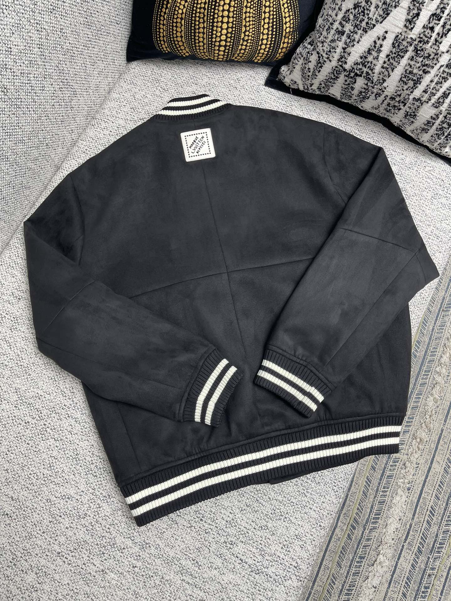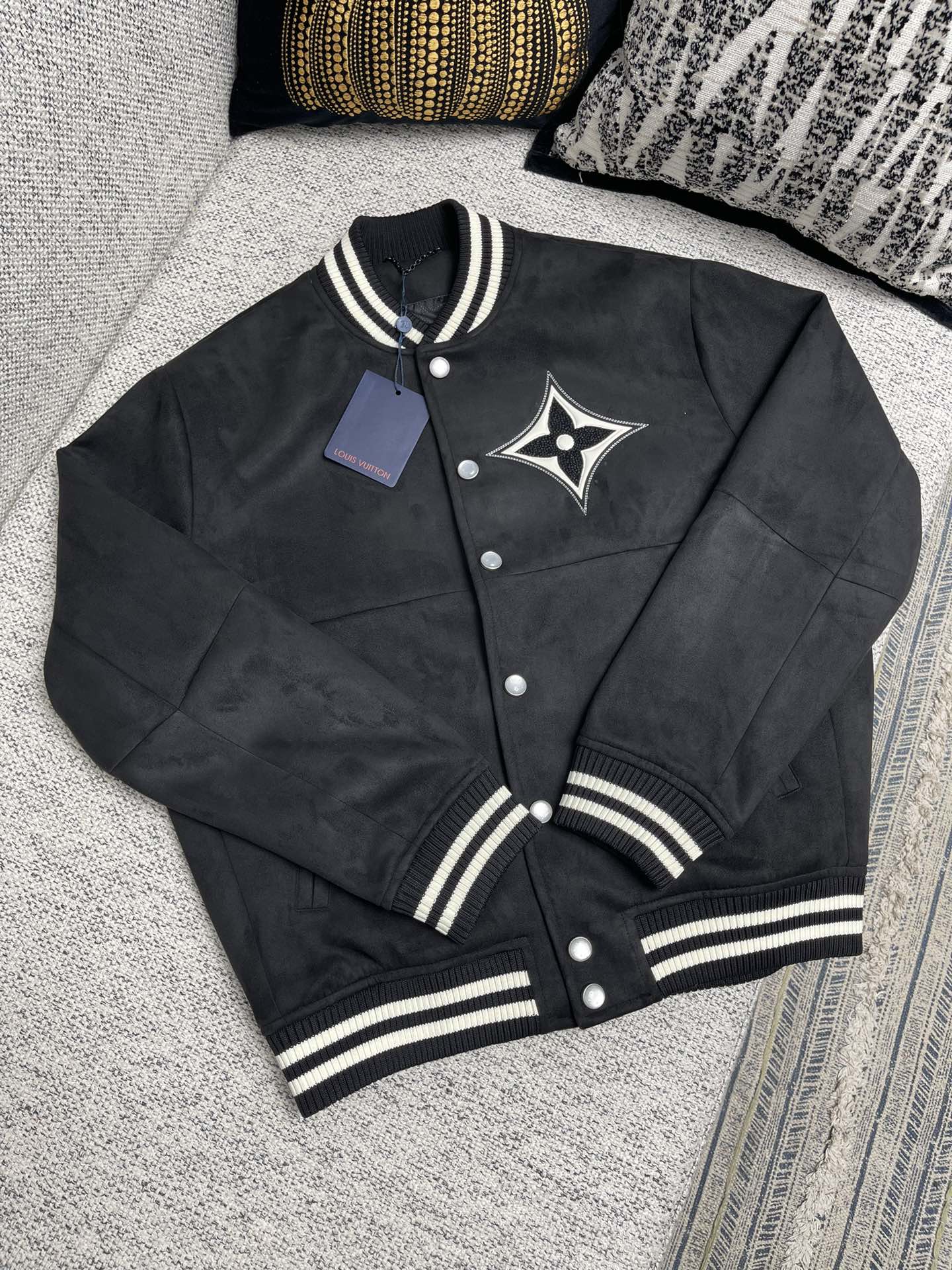ブラックベースにホワイトの配色リブを施したルイヴィトンのスタジアムジャンパーは、クラシックな雰囲気と現代的なエッセンスを融合させた一着。胸元に大胆にあしらわれたモノグラム風ロゴワッペンがアクセントとなり、着るだけで視線を引く存在感を放ちます。見分けがつかないほどの丁寧な作り込みと、しっかりとした厚みのある生地感が魅力。カジュアルからストリート、モードまで幅広いコーディネートにマッチします。秋冬の主役アウターとしておすすめ。