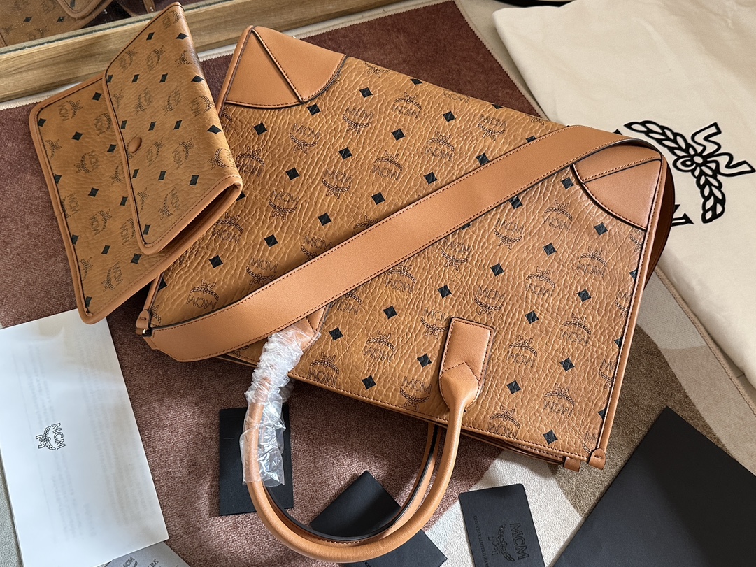 MCM(MCM)のキャメルトートバッグは、クラシックなスクエアシルエットにブランドロゴを全面に施したモデル。付属のフラップバッグは取り外し可能で、シーンに応じて使い分けできます。広い収納スペースと丈夫なレザーハンドルを備え、通勤や旅行に最適。実店舗運営と同等レベルで再現された縫製と質感は、芸能人愛用アイテムとしても注目度が高い逸品。2025新作として実用性と高級感が両立された一品です。