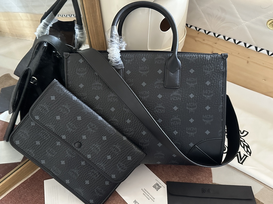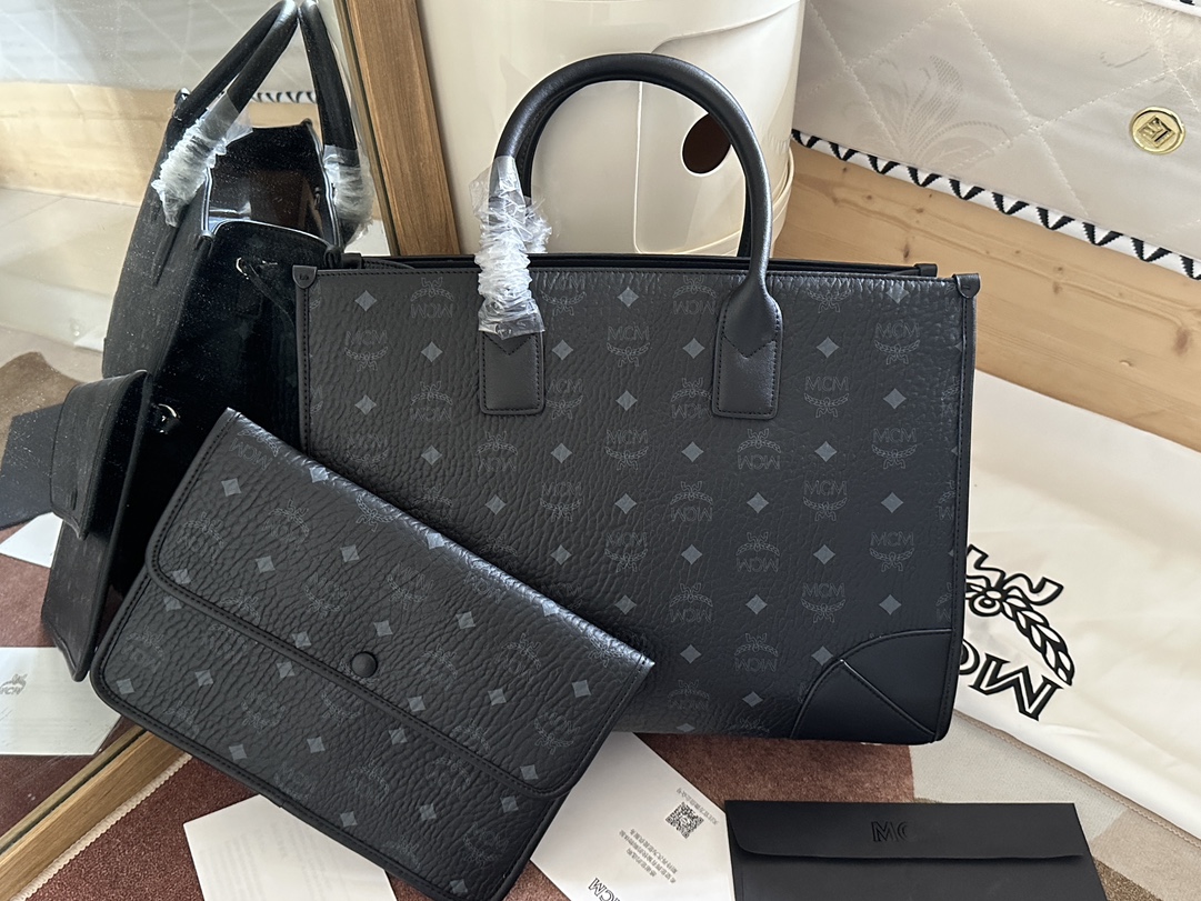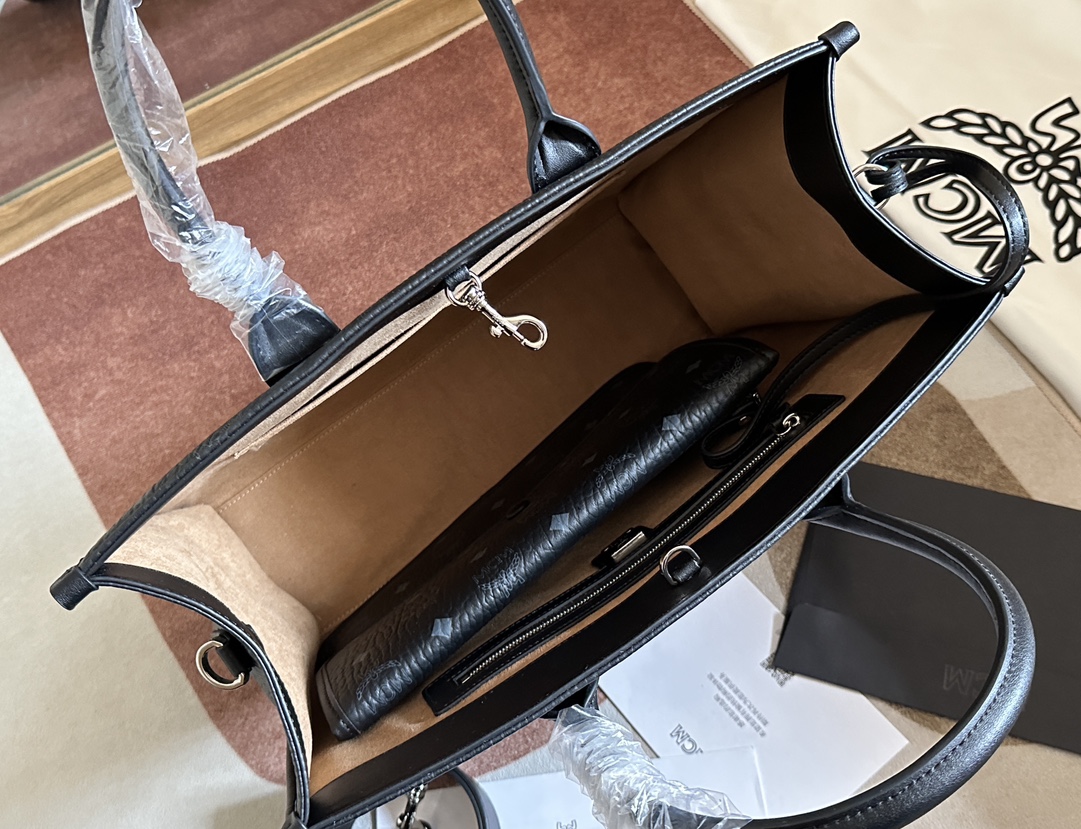MCM(MCM)のブラックトートバッグは、ブランド定番のモノグラム柄を全面に施しながら、落ち着いた印象を与えるシックなデザイン。広々とした内部スペースと取り外し可能なクラッチバッグを備え、収納力と実用性が抜群です。柔らかなレザーと精巧な縫製は、日常使いからビジネスシーンまで対応可能。2025新作として忠実に再現された高再現度の仕上げは、多くのユーザーに評価されています。