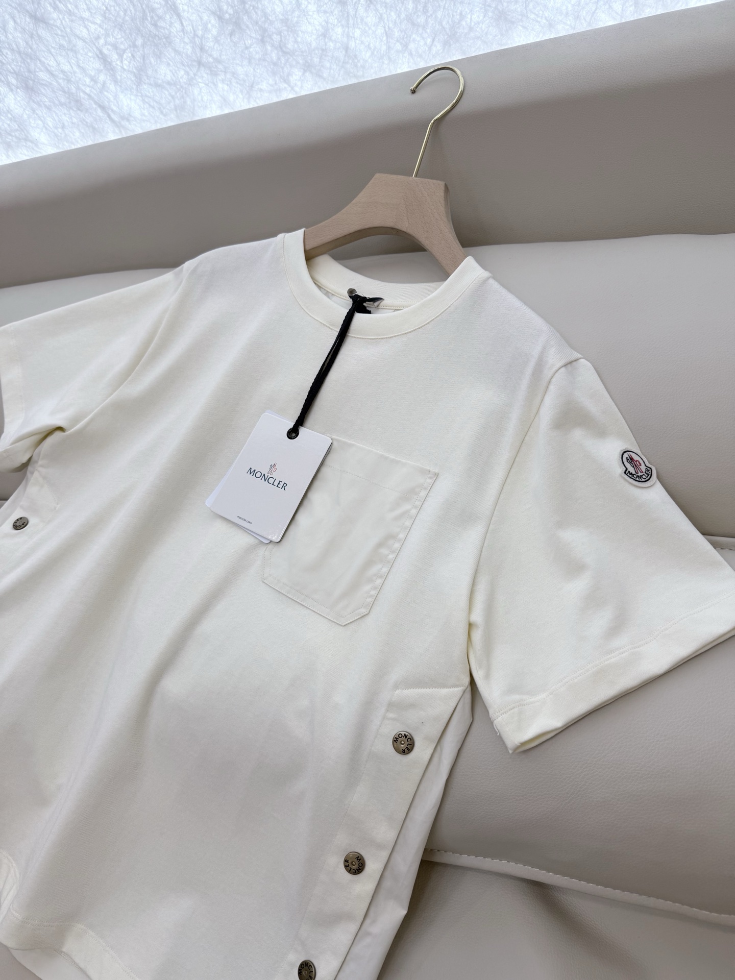 モンクレール スーパーコピー サイドボタン クルーネックTシャツ ホワイト 夏服新作