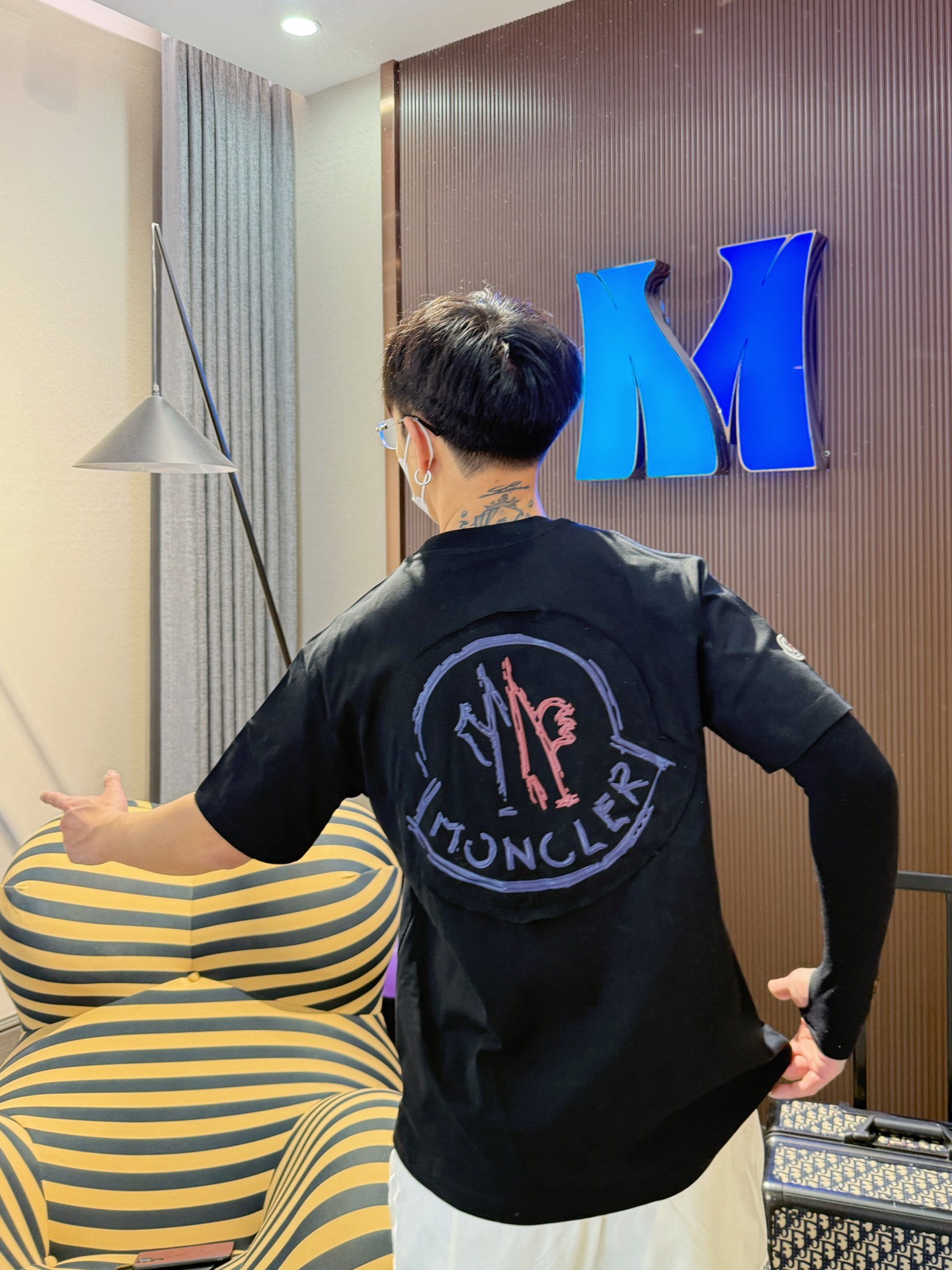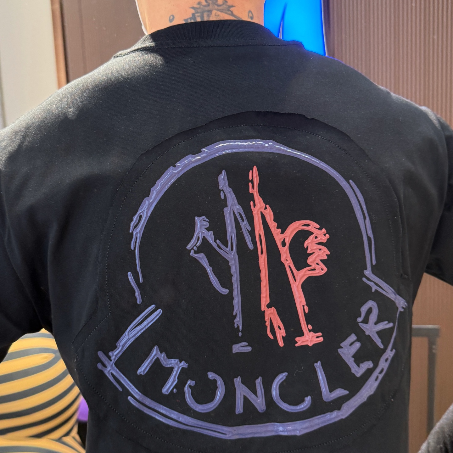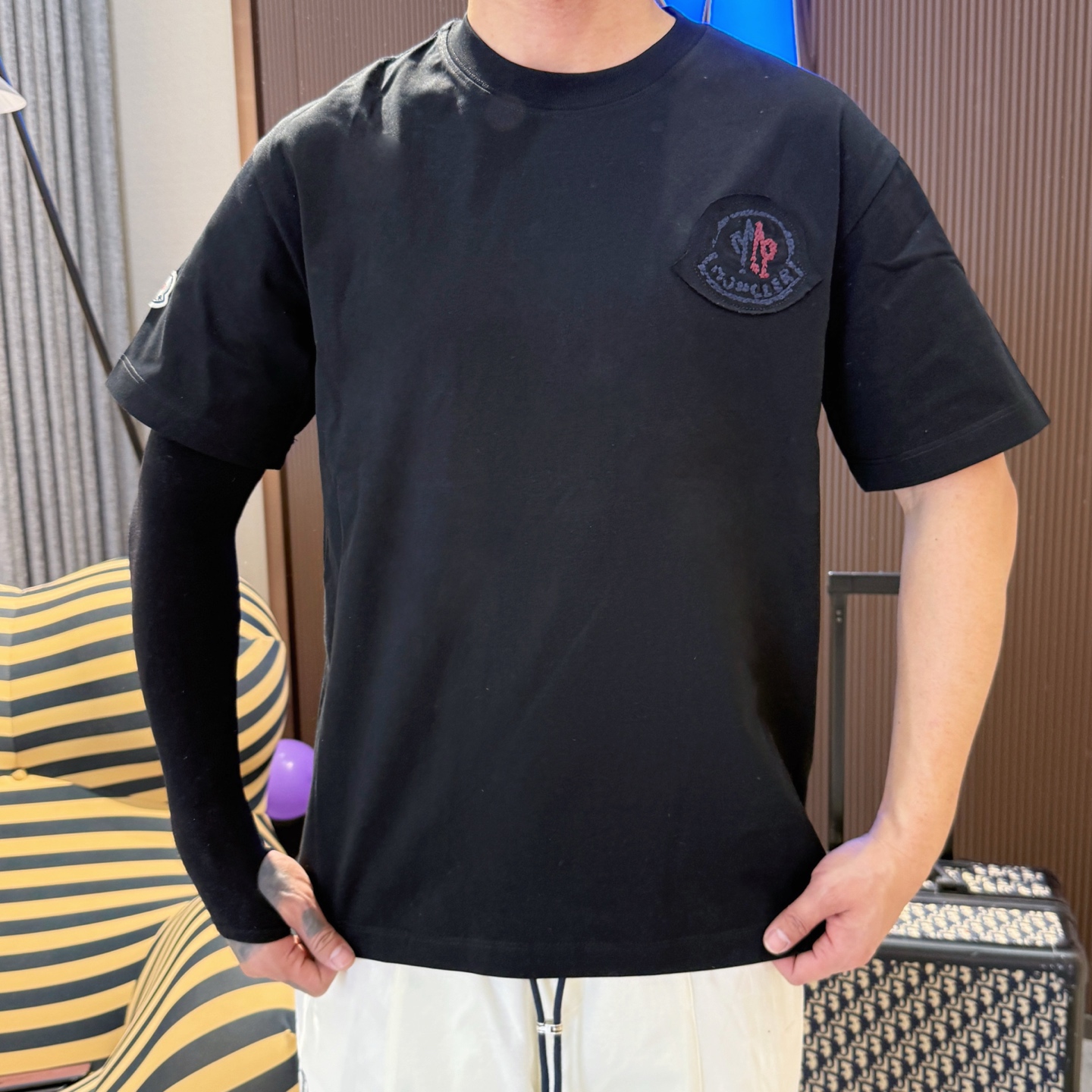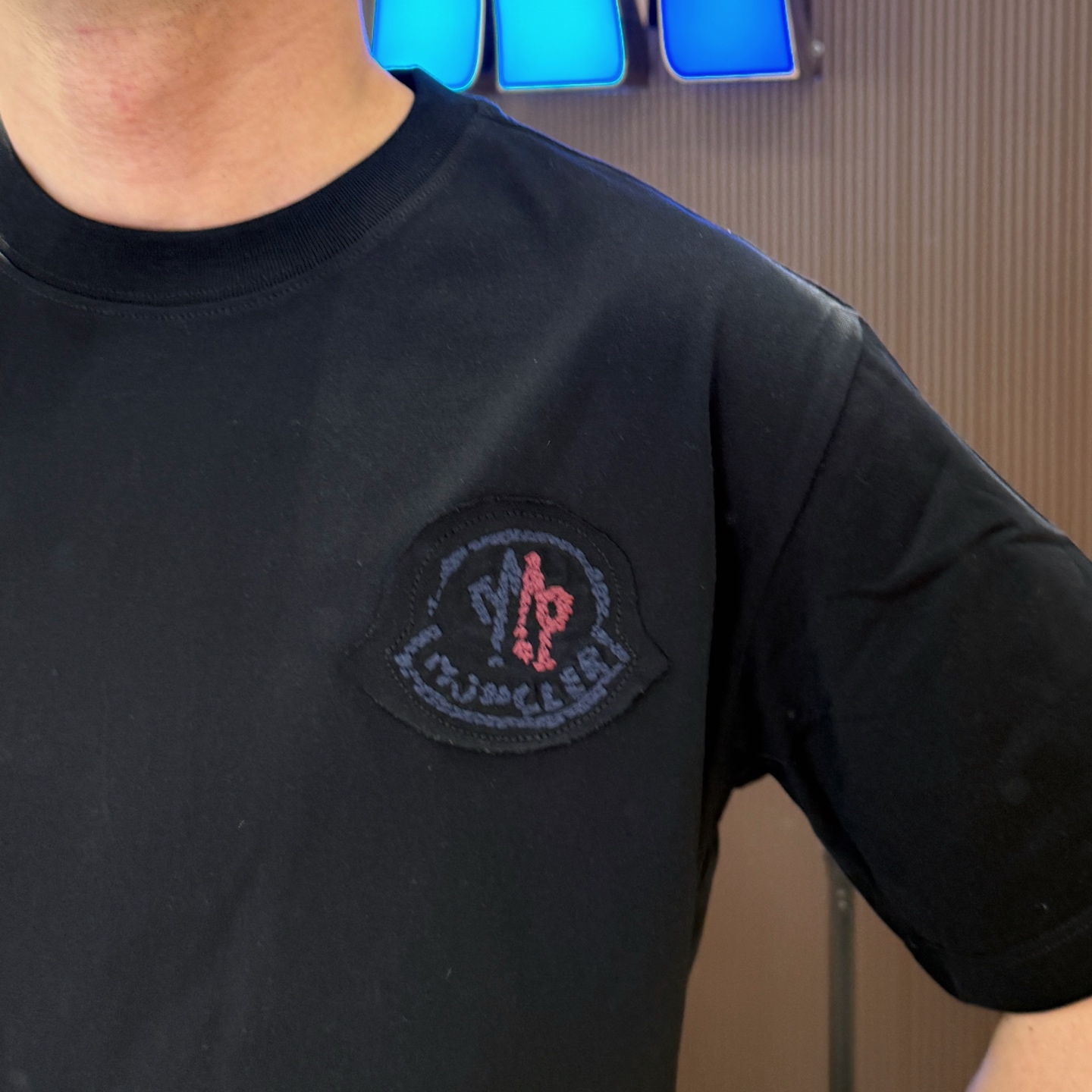 モンクレール コピー Tシャツ ブラック 刺繍ワッペン仕上げ 立体感抜群