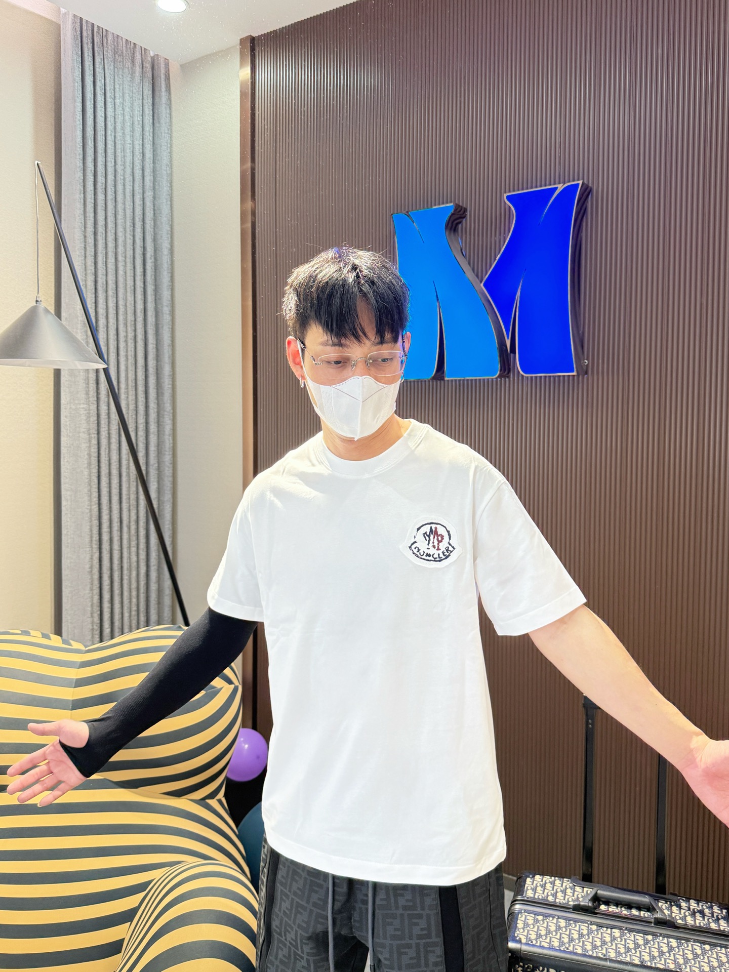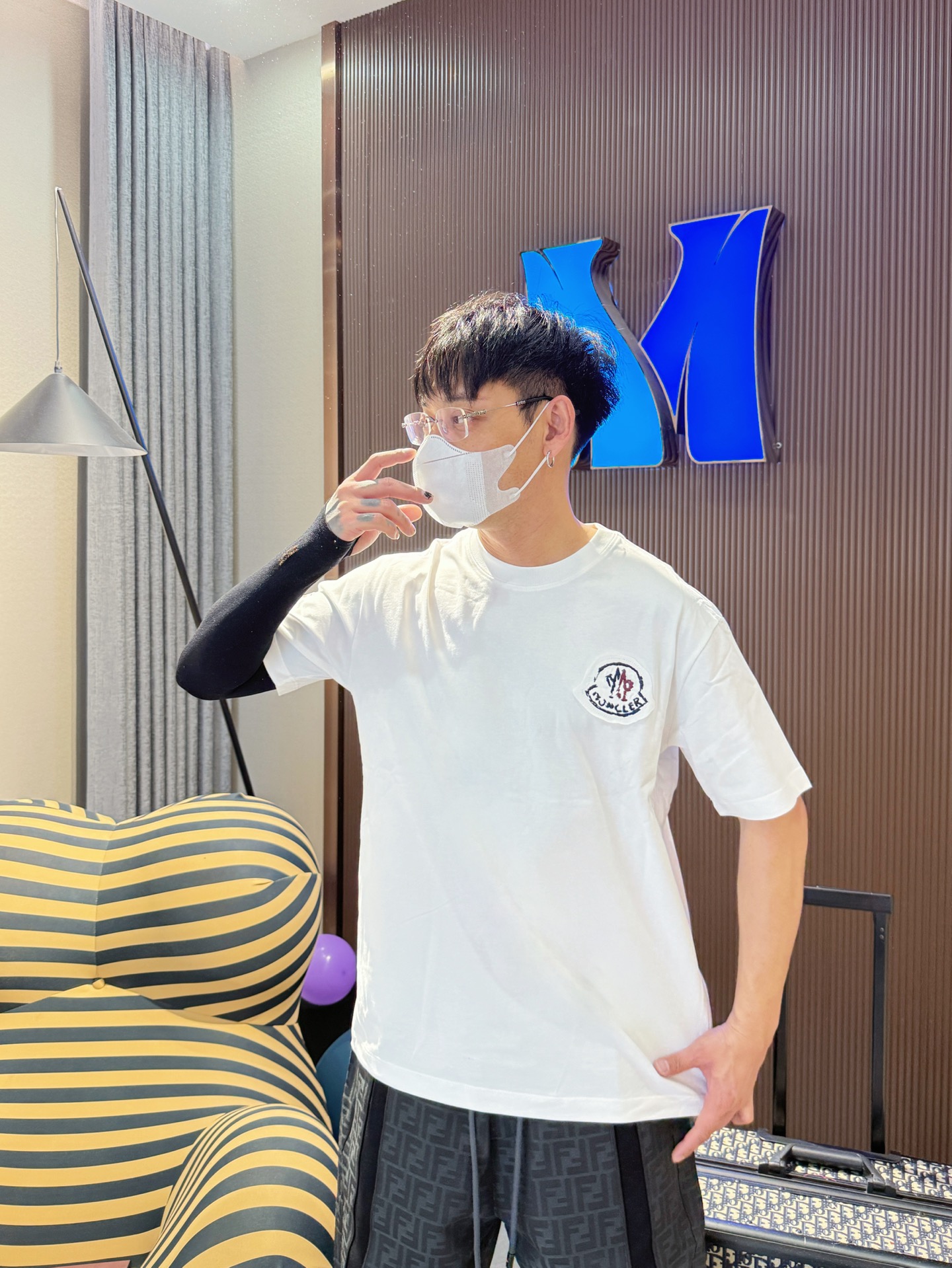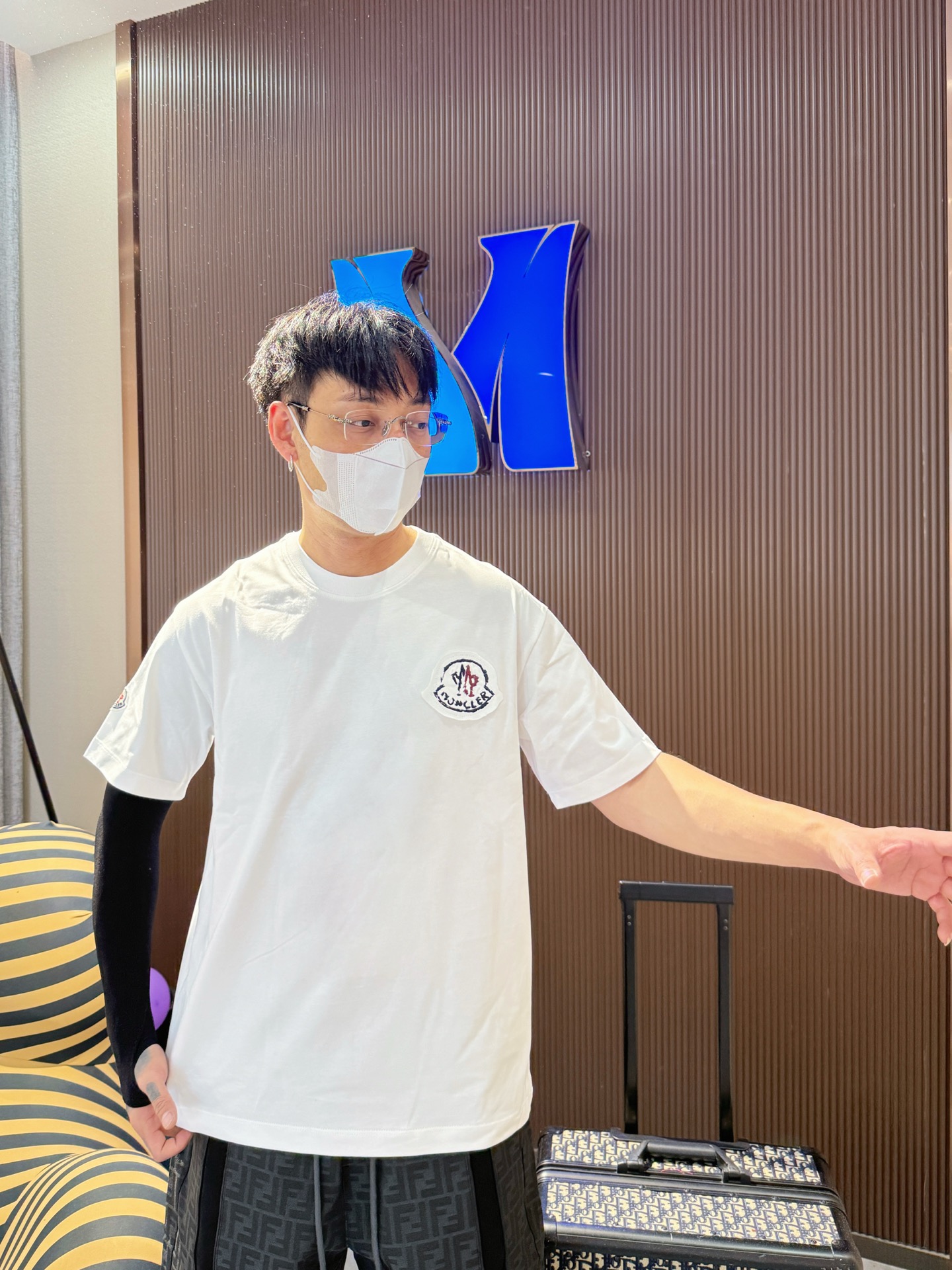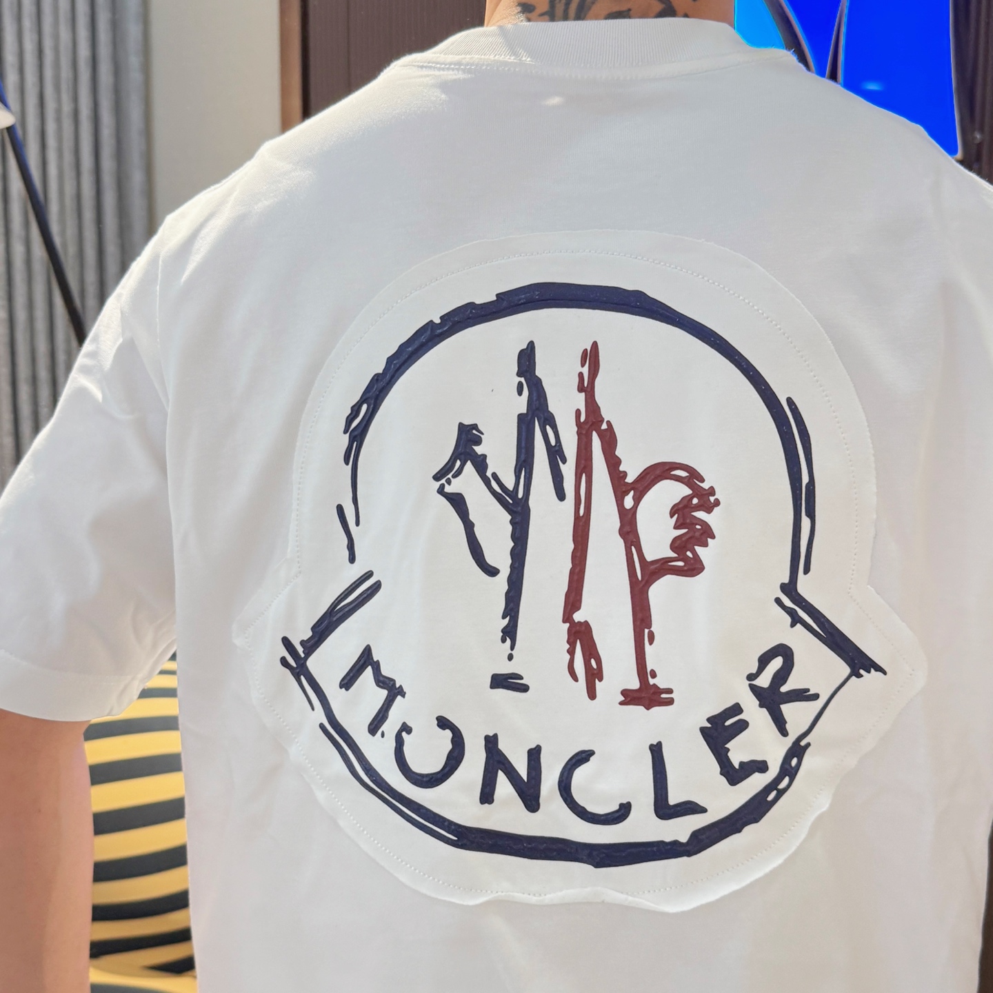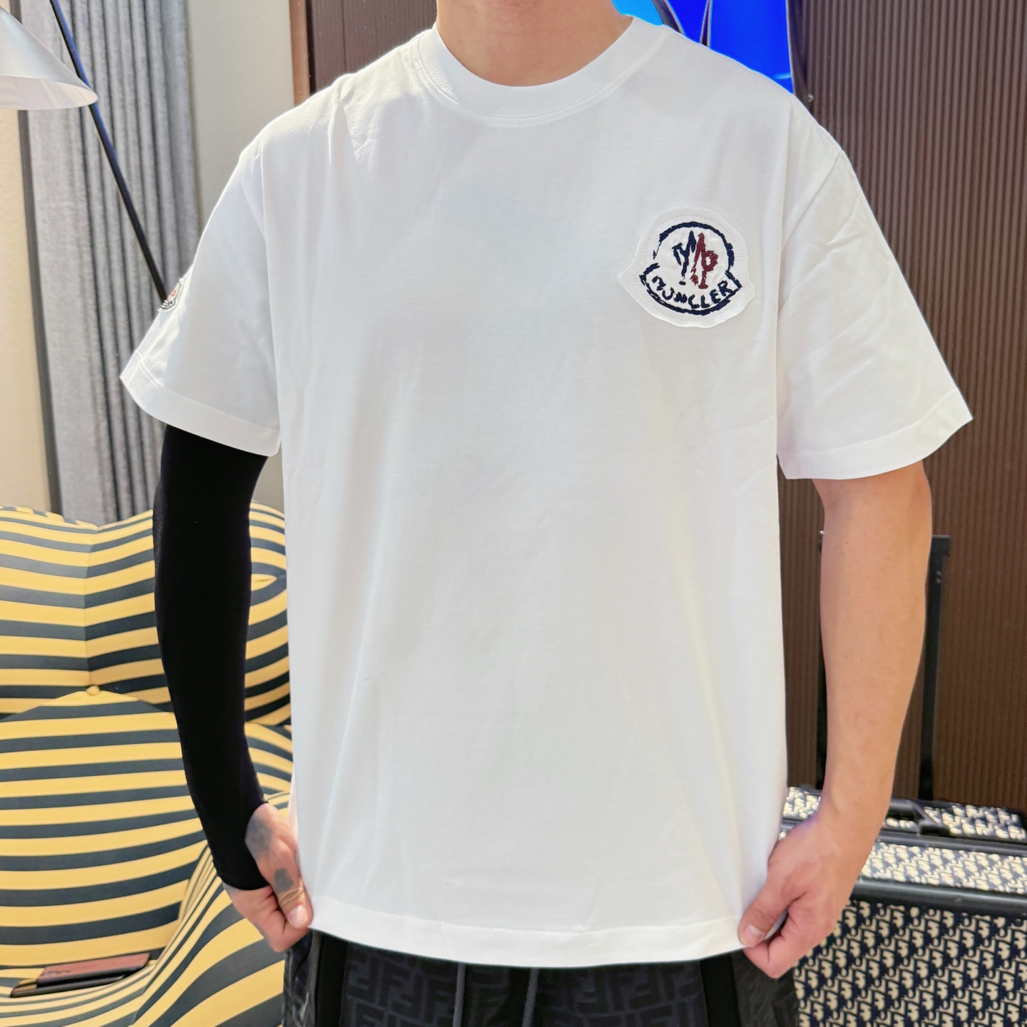 モンクレール ブランド コピー Tシャツ ホワイト刺繍ワッペン付き 清潔感満点