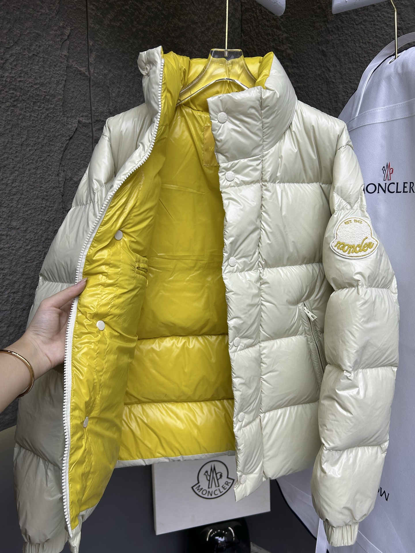 柔らかな光沢を放つアイボリーカラーが冬の装いに映えるモンクレール(Moncler)のブランド コピー ダウンジャケット。襟元まで包み込むスタンドカラーが冷気を遮断し、保温性を高める。軽くて暖かい構造は街歩きや通勤にも最適で、女性にも人気。シンプルながら存在感のあるデザインで、高再現度の仕上がりが魅力。見た目の上質感と実用性を兼ね備えた定番の一枚。