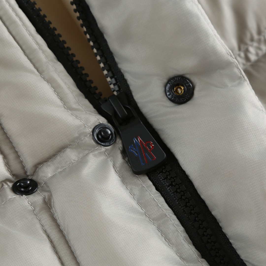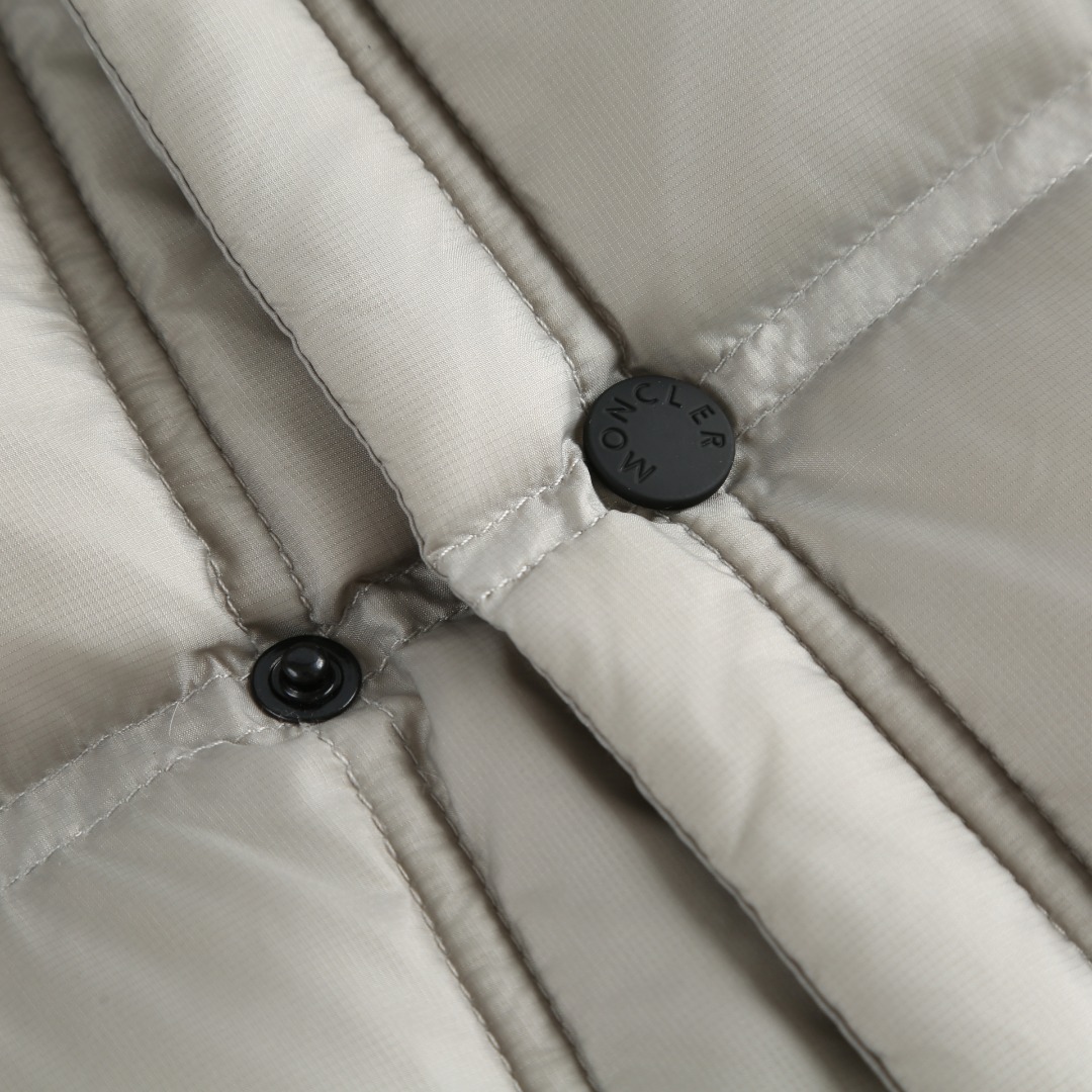 上品なアイボリーカラーが特徴のモンクレール(Moncler)スーパーコピー ダウンベスト。艶やかな素材感と立体的なキルティングデザインが美しく、スタイルを選ばず着こなせる万能モデル。軽量ながら優れた防寒性を発揮し、秋冬のレイヤードにも最適。ロゴパッチやボタンの再現度も高く、実物と見分けがつかないほどの完成度。上質感と機能性を兼ね備えた2025年の注目アイテム。