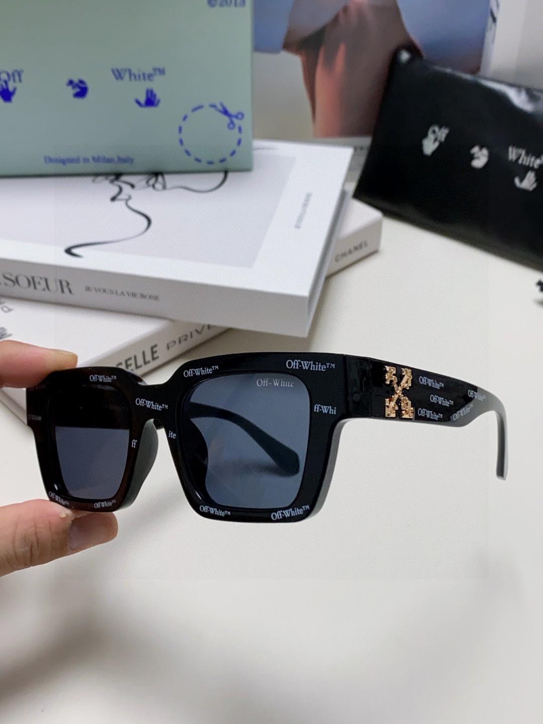 ブランドらしい遊び心をふんだんに取り入れた総柄ロゴサングラス。フロントからテンプルまで細かなOff-Whiteロゴが散りばめられ、n級コピー ならではの高再現度で大胆な世界観を表現した一本です。ブラックベースにホワイトロゴが際立ち、コーディネートの主役として視線を集める存在感を発揮。サイドにはゴールドの立体アローズロゴを配し、華やかさとストリート要素を融合させた仕上がりになっています。スクエア型のフォルムは顔のラインをシャープに見せ、ユニセックスで使いやすい点も魅力。レンズは濃度を抑えたダークブルーで、ファッション性を高めつつ日常使いにも適しています。ストリート系・韓系・モード系コーデすべてに相性が良く、特別感を求める方にぴったりのデザインです。