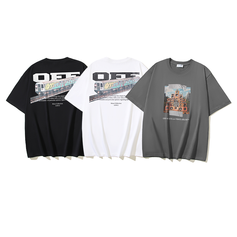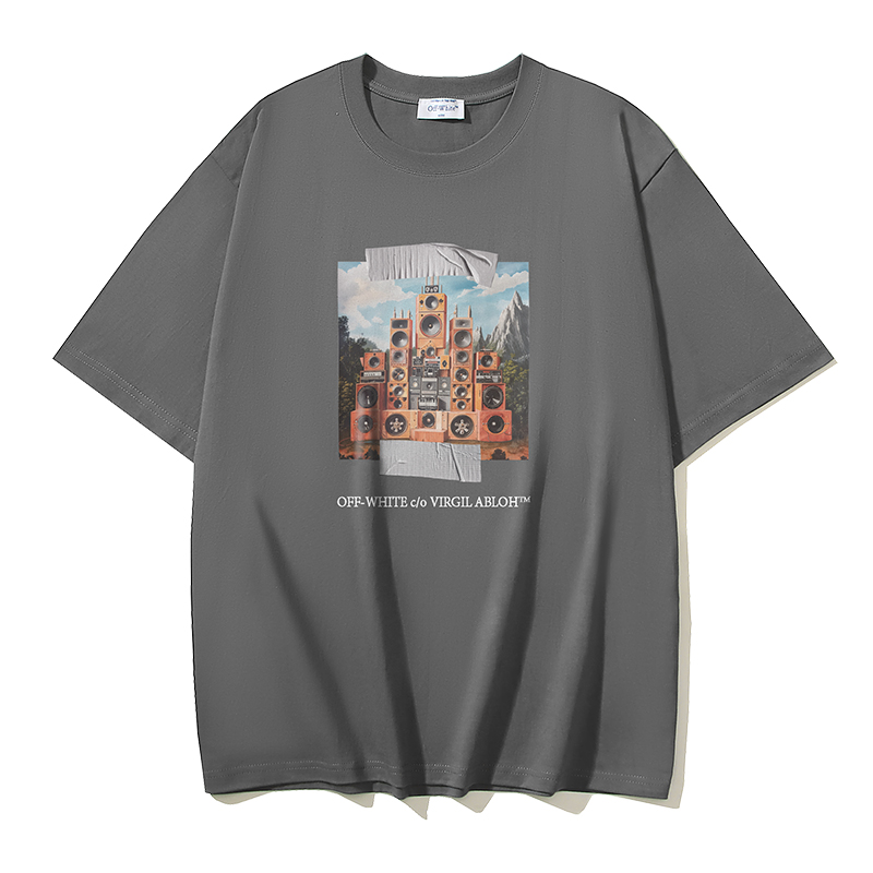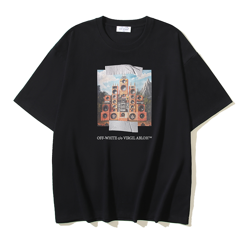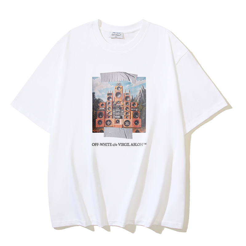 Off-White 芸能人偽物 アートスピーカーグラフィックTシャツ 個性派デザインの人気ストリートモデル